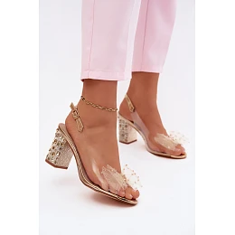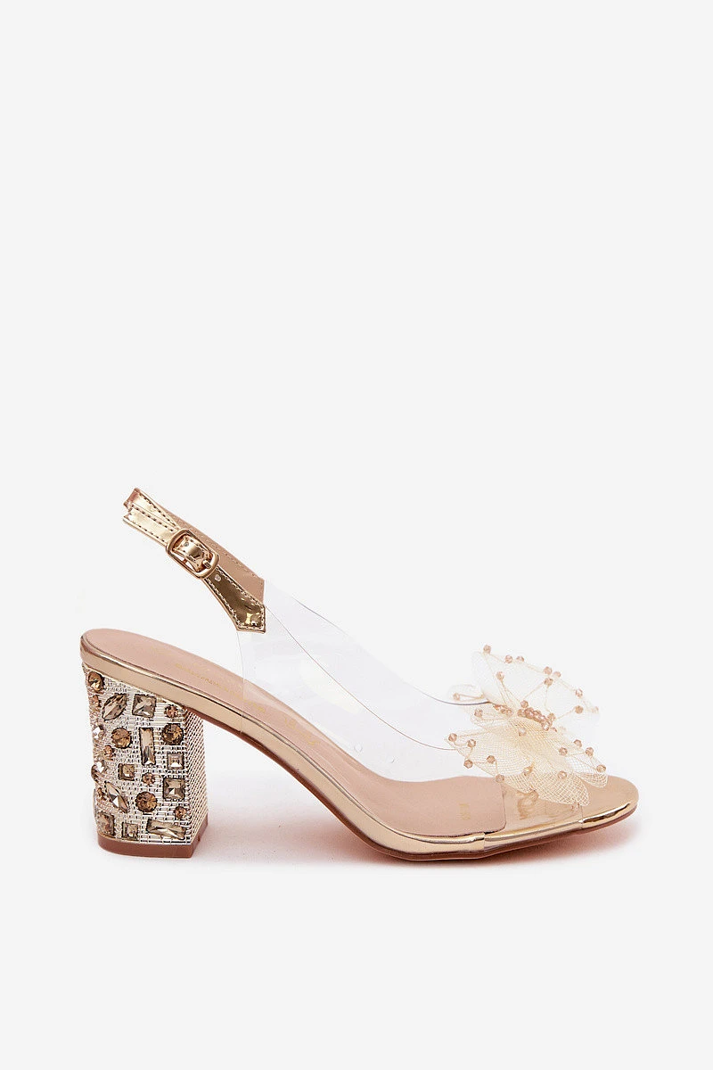 Sandály na podpatku s krystaly síťová mašle D&A MR61-9010 Zlaté