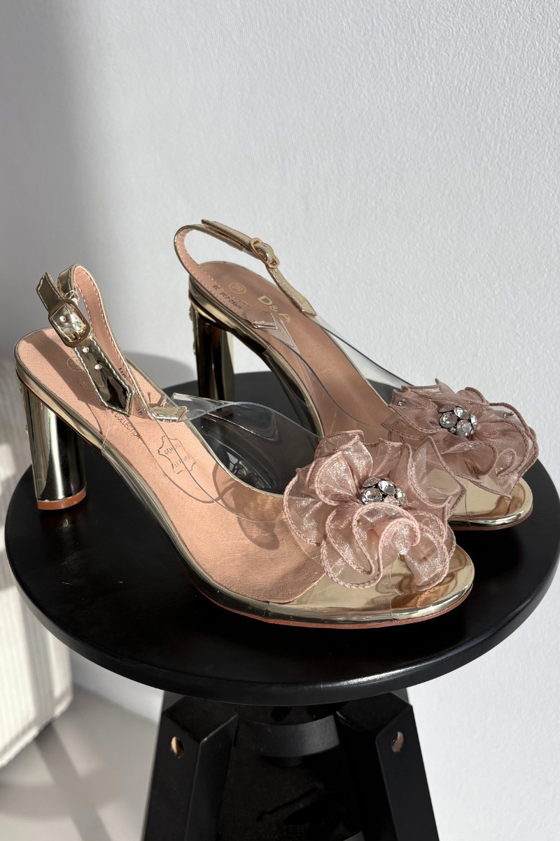 Sandály na podpatku s ozdobou a krystaly D&A MR52-236 zlaté