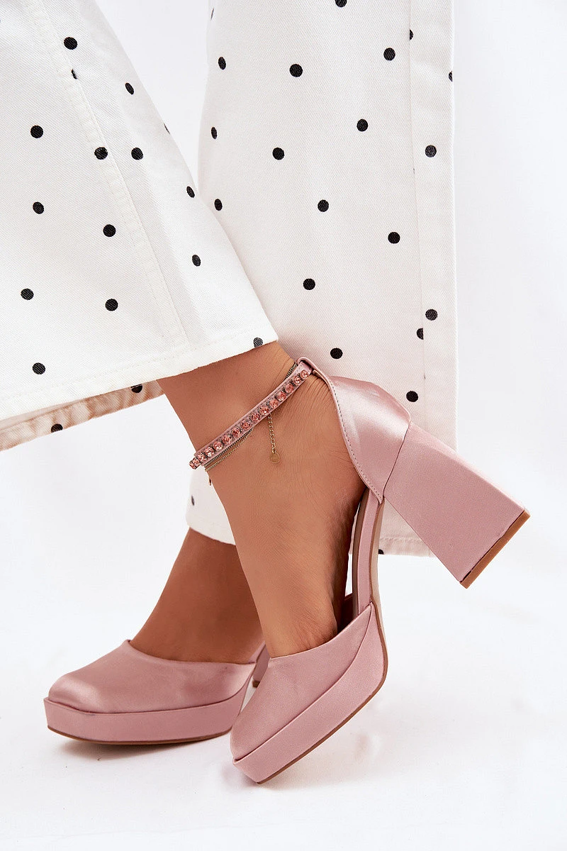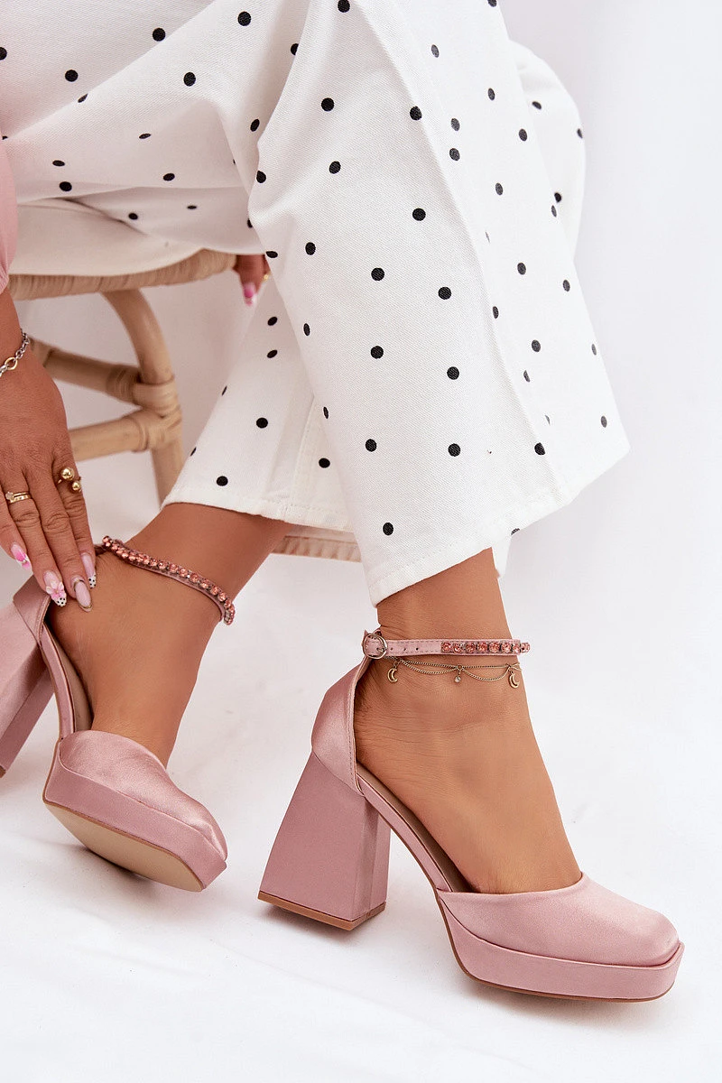 Dámské sandály s saténovým povrchem na sloupku jsou stylovým návrhem pro ženy, které ocení eleganci v moderním provedení. Jemný lesk materiálu jim dodává výjimečný šarm a krásně zvýrazní každý outfit – jak večerní, tak formální. Masivní podpatek zajišťuje pohodlí po celý den nošení a ozdobný pásek kolem kotníku dodává celku jemnost a elegantní charakter. Tento model je určen na zvláštní příležitosti, kdy chcete vypadat stylově. Při výběru velikosti se řiďte tabulkou velikostí.