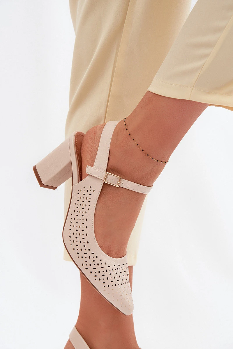 Dámské sandály z eko kůže jsou stylovým návrhem na letní dny, který kombinuje eleganci s pohodlím. Otevřené zdobení jim dodává lehkost a jemný charakter, ideálně se hodí do sezónních outfitů. Tenké, špičaté nosy opticky prodlužují nohy a zvýrazňují ženskou siluetu. Nastavitelná přezka na sponu umožňuje přizpůsobení obuvi noze, což zajišťuje pohodlí při nošení. Stabilní podpatek ve tvaru sloupu zaručuje jistý krok, takže sandály jsou vhodné jak na každý den, tak na formálnější příležitosti. Při výběru velikosti se řiďte tabulkou velikostí.