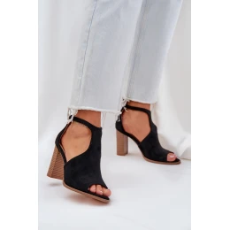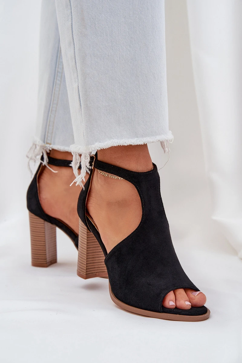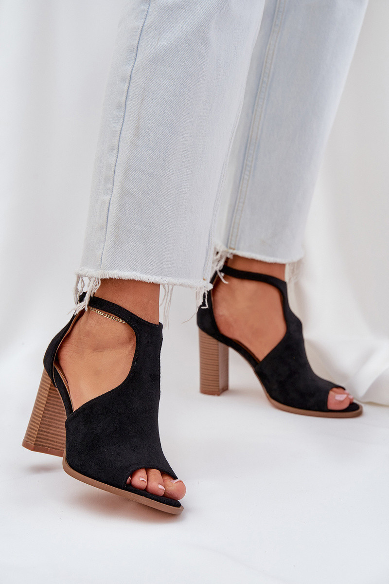 Sandály Na Podpatku Z Eko Semiše Černé model 21684578 - Boto