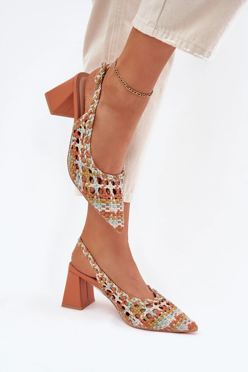 Dámské sandály z pleteniny na sloupkovém podpatku jsou stylovým návrhem na letní dny. Špičaté špičky jim dodávají štíhlost a zapínání na přezku s nastavitelným páskem zajišťuje dokonalé přizpůsobení noze. Měkká stélka z eko kůže zaručuje pohodlí po celý den. Ideální na večerní vycházky nebo speciální příležitosti, kombinují stylový design s pohodlím. Při výběru velikosti se řiďte tabulkou velikostí.