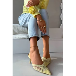 Sandály z pleteniny na jehlové podpatku žluté Hanelis