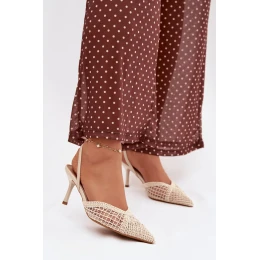 Sandály z pleteniny na jehlovém podpatku světle béžové model 21919223 - Boto