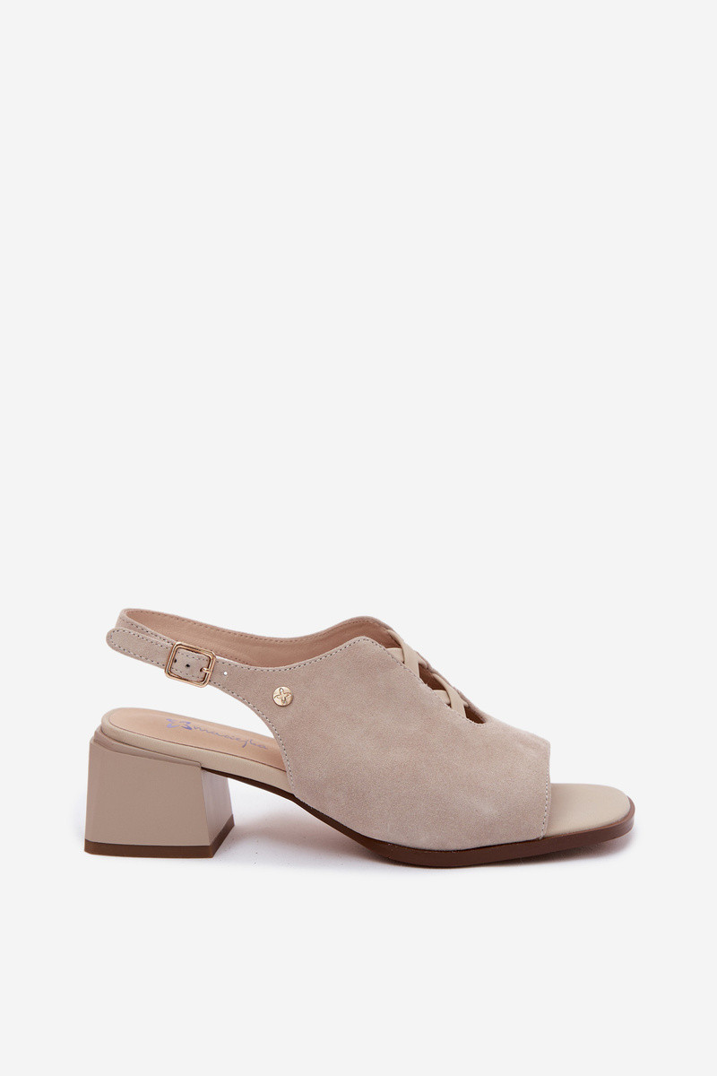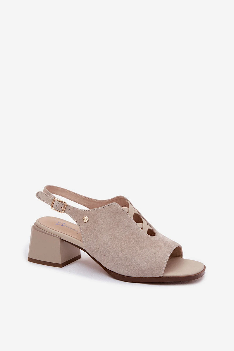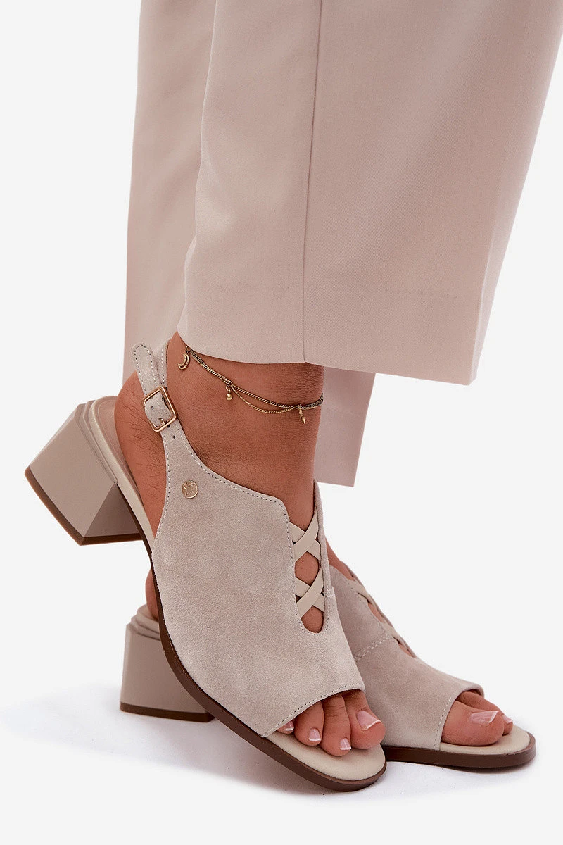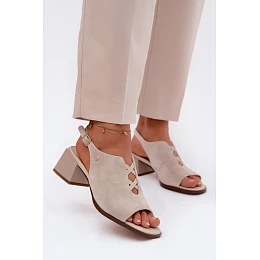 Sandály z přírodního semiše na podpatku Maciejka K7521-22 světle béžové
