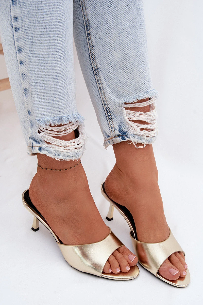 Sandály z umělé kůže na jehlovém podpatku Zlaté Melissea
