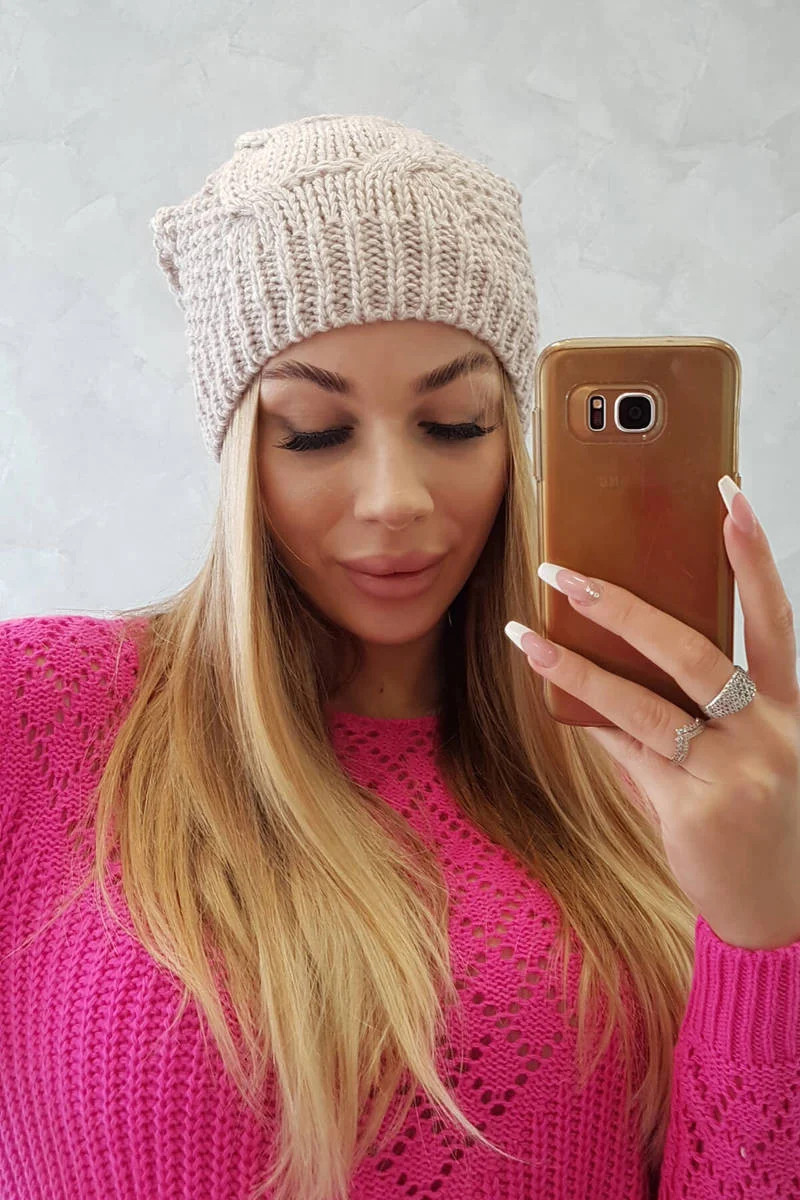 Sandra model 18750743 světle béžová fleecová čepice - K-Fashion