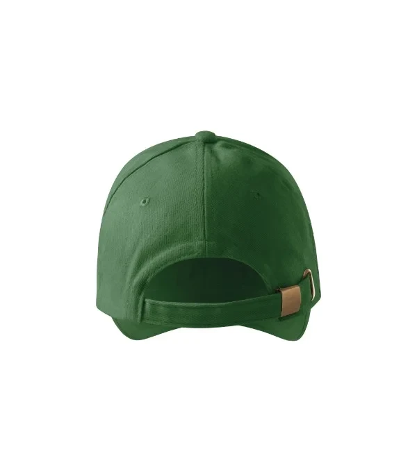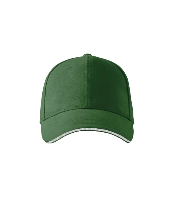 šestipanelový střih vyztužené 2 přední panely prošívaný, lehce prohnutý kšilt s konstrastním proužkem obšité větrací otvory potící páska velikost nastavitelná mosazným klipem