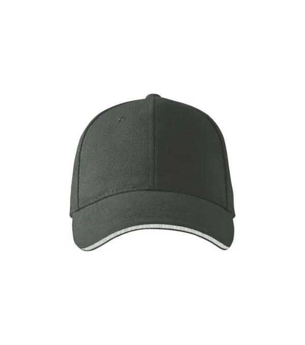 šestipanelový střih vyztužené 2 přední panely prošívaný, lehce prohnutý kšilt s konstrastním proužkem obšité větrací otvory potící páska velikost nastavitelná mosazným klipem