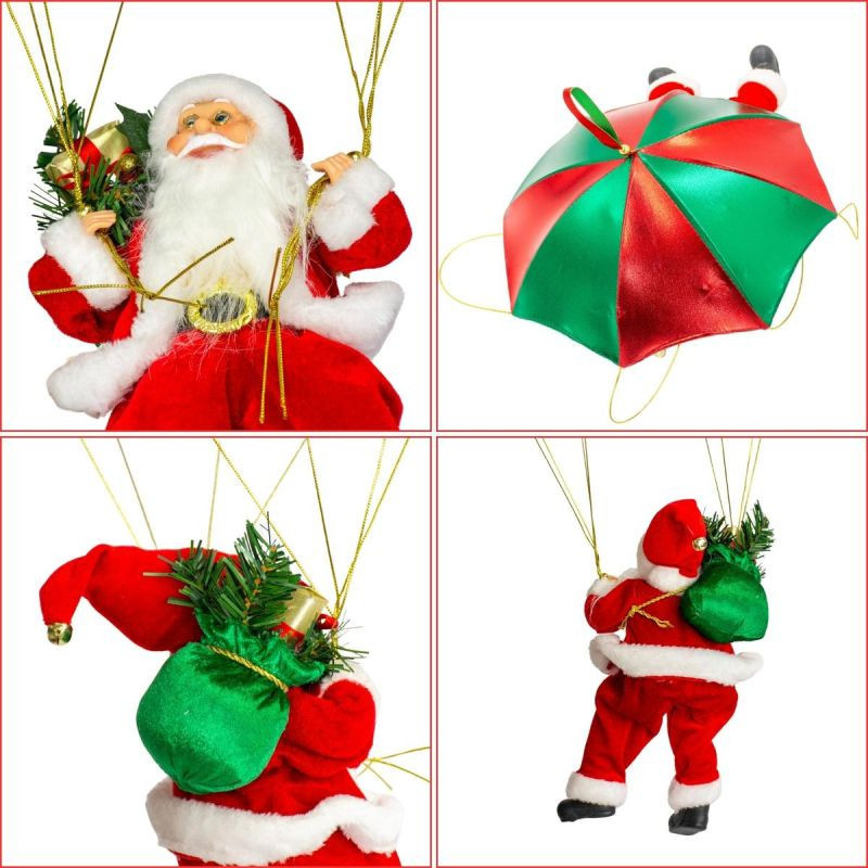 Santa na padáku je neobvyklá dekorace, která se odlišuje od tradičních ozdob a vnáší do vánočních dekorací svěžest, humor a moderní nádech.