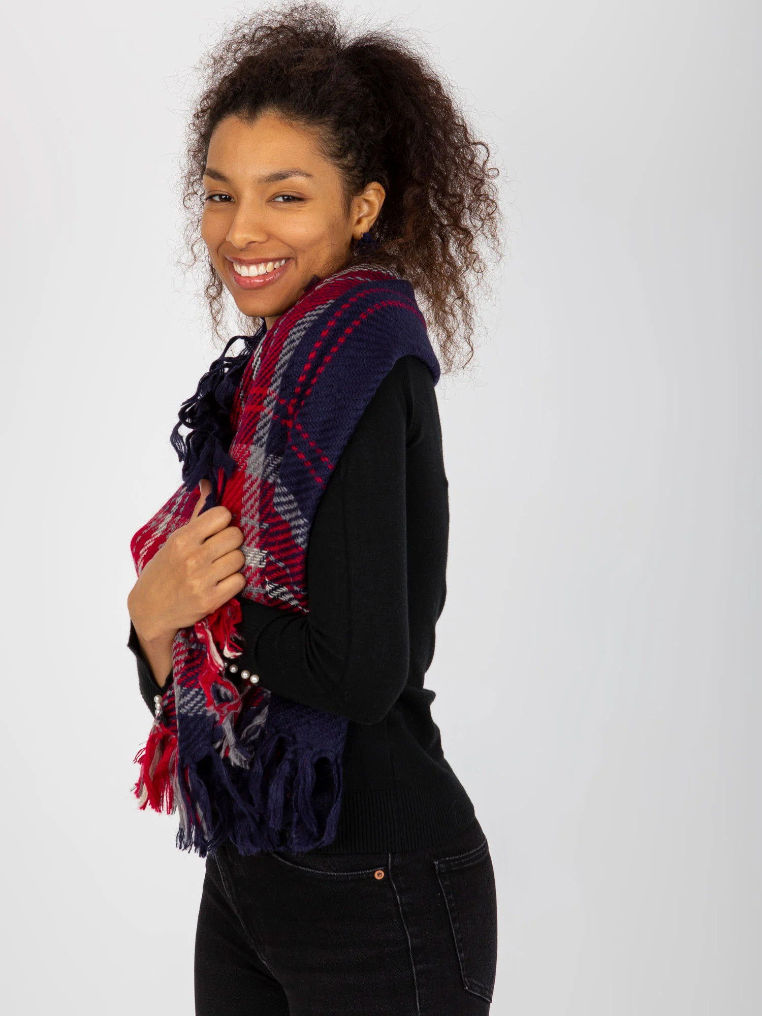 Námořnicky modrá dámská zimní šála s kostkovaným vzorem.