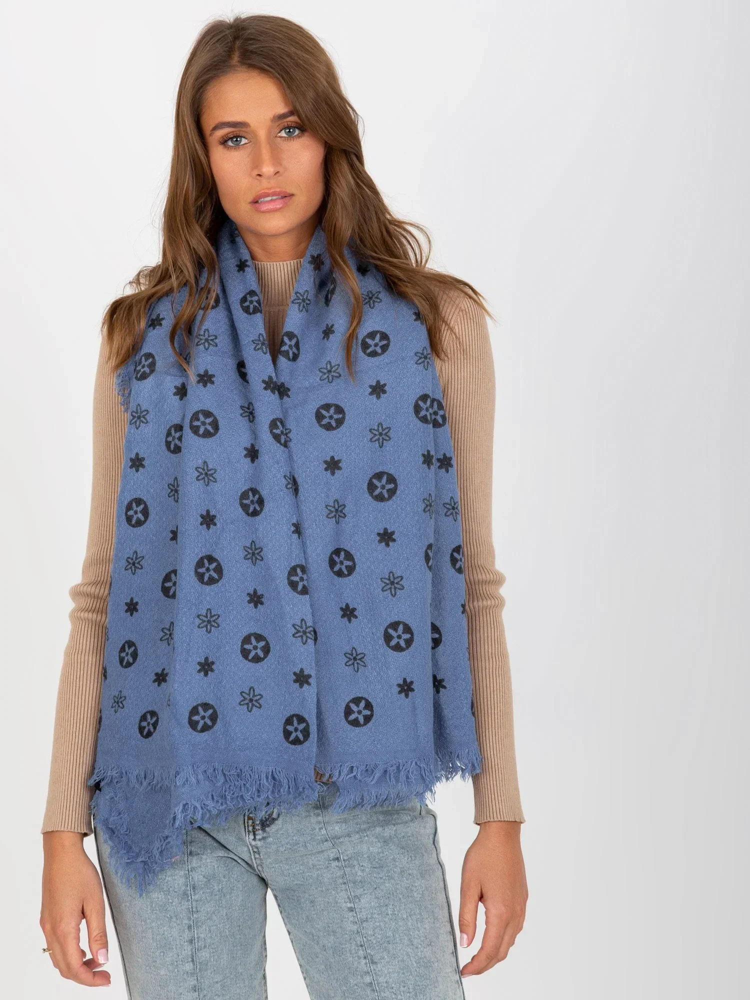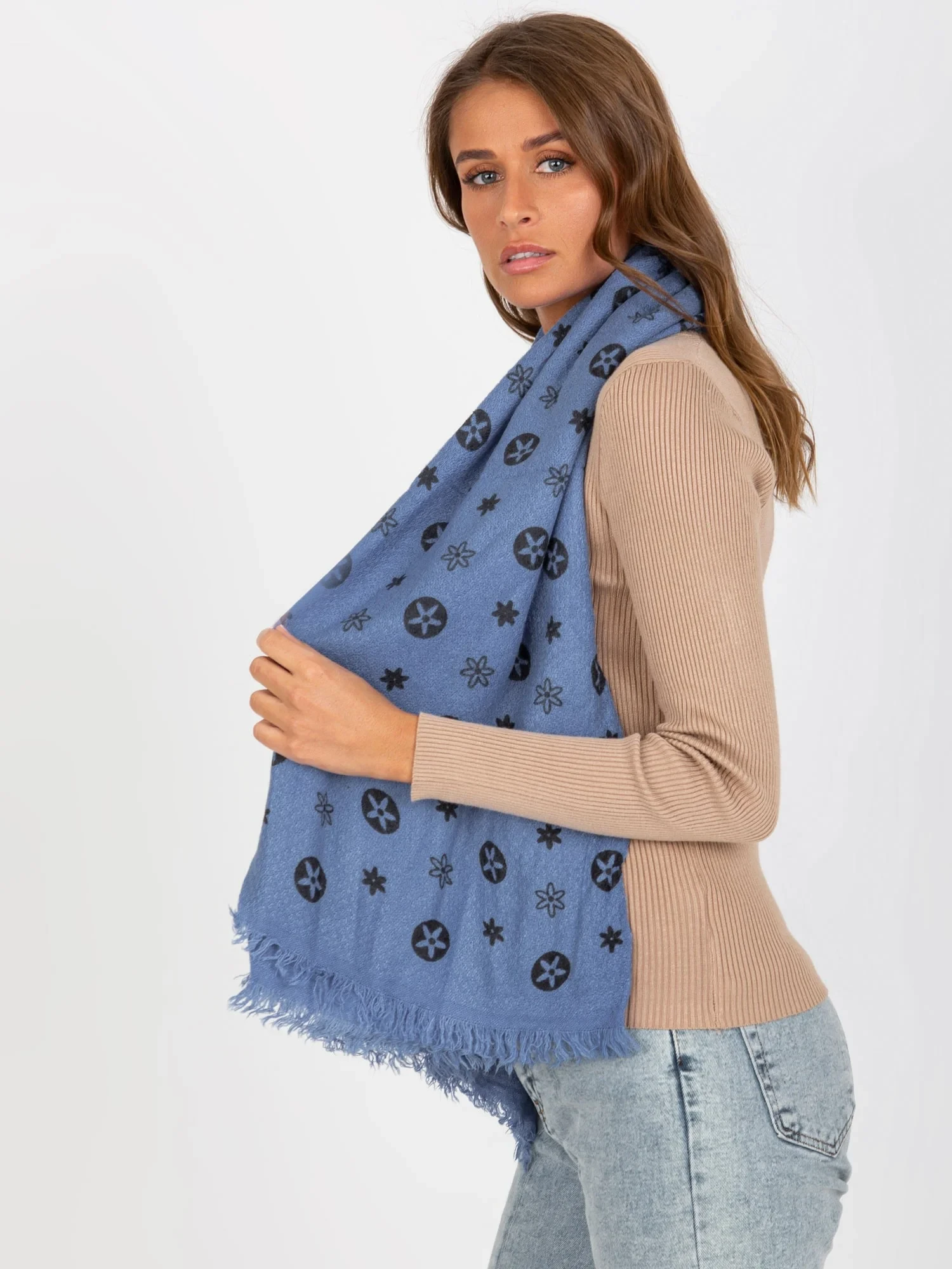 Tmavě modrá vzorovaná šála pro ženy.