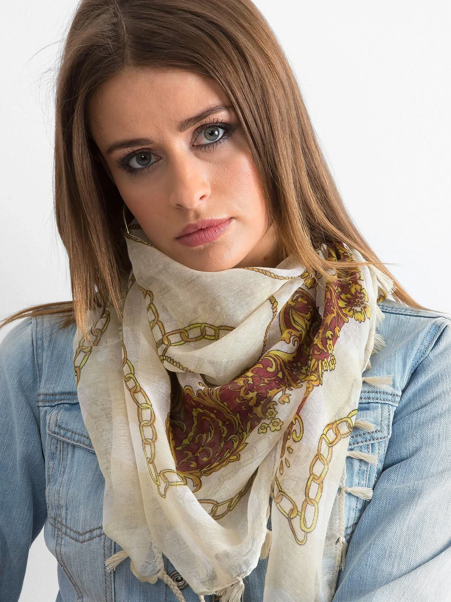 Vzorovaná světle béžová šála.