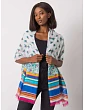 Oranžová šála s potisky.
