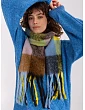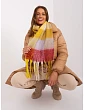 Žlutá a bordó zimní šála s kostkovanými třásněmi.