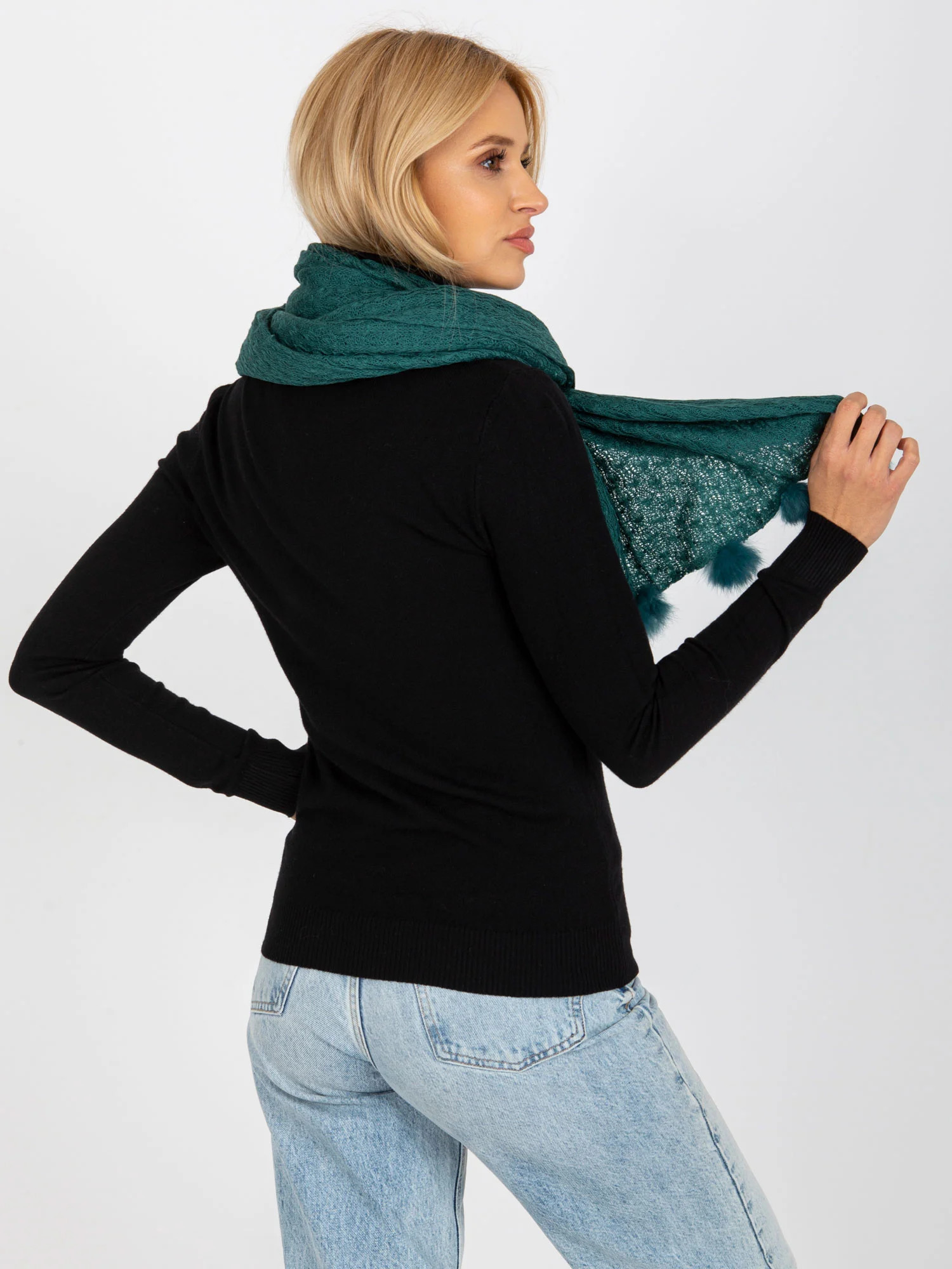 Námořnický prolamovaný šátek s bambulkami.