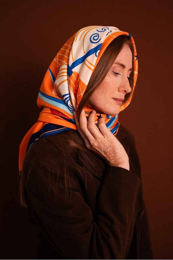 - s abstraktním, téměř surrealistickým motivem je doplňkem pro ženy, které mají rády odvážný styl a výrazné doplňky