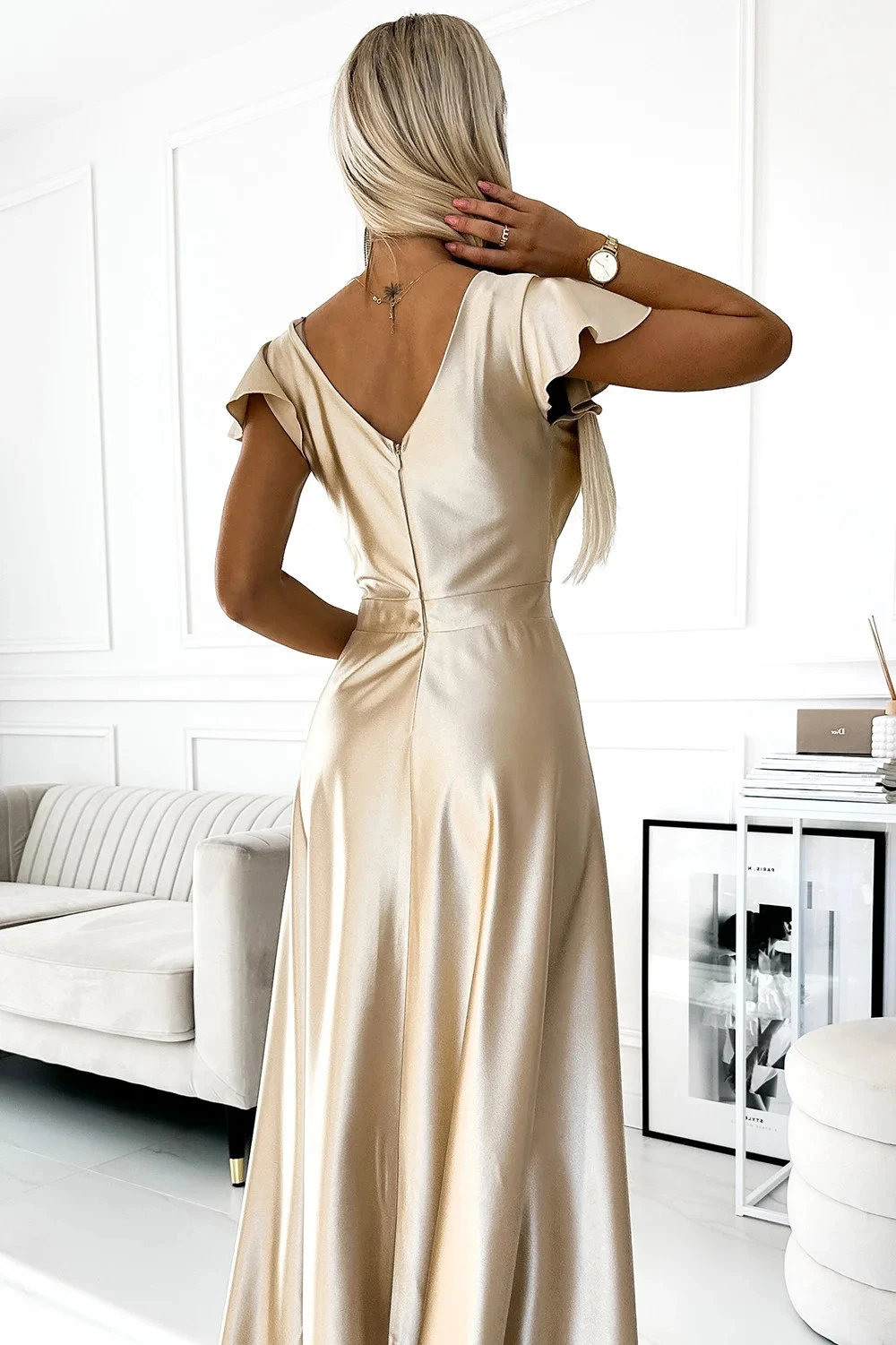 Přidání recenze k saténové dlouhé šaty model 21310011 CRYSTAL zlaté - numoco