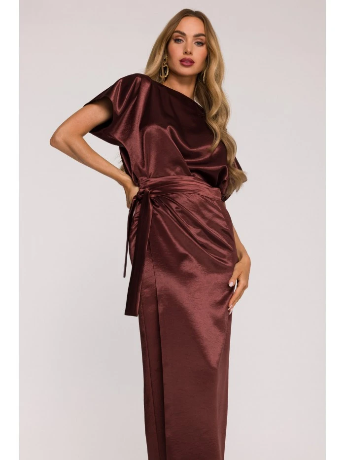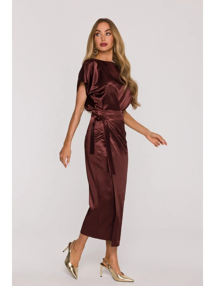 Saténové šaty v stylu hnědé model 21479272 - Moe