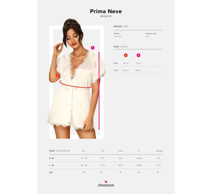 Produkt Saténový župan model 15137245 - Obsessive prodáváme v těchto velikostech: S/M, L/XLa barvách bílá5901688230435, 5901688230442