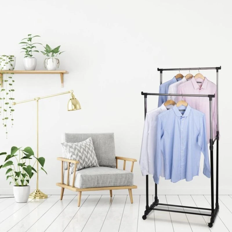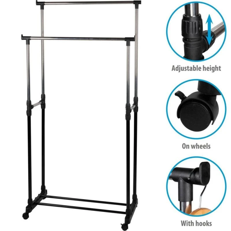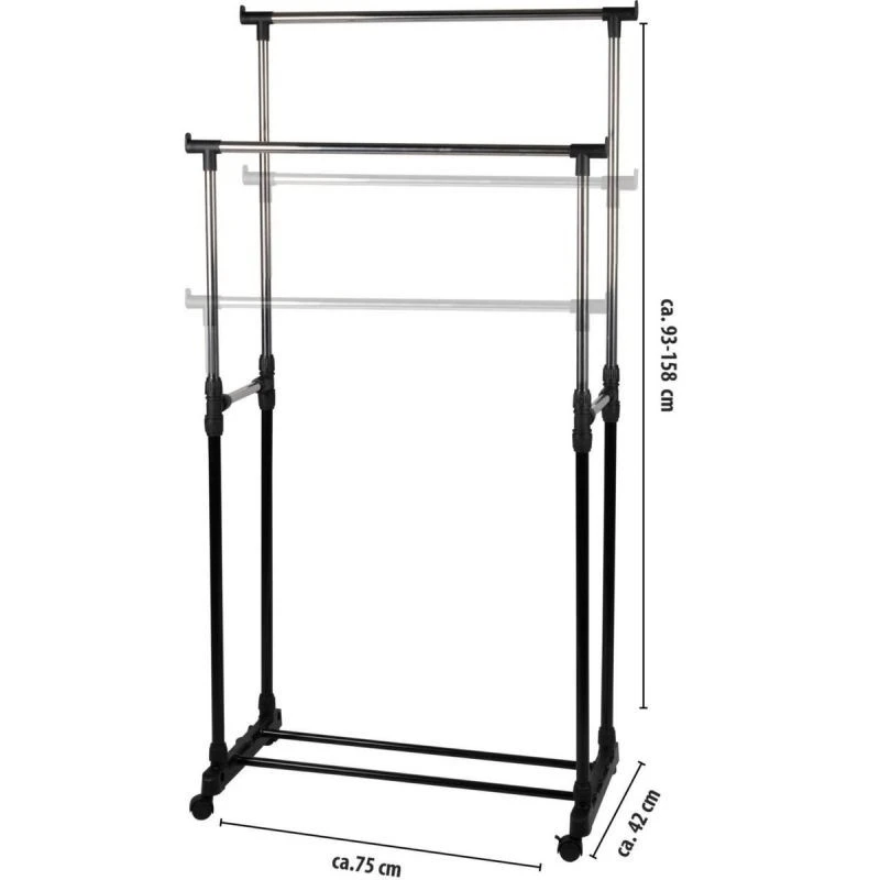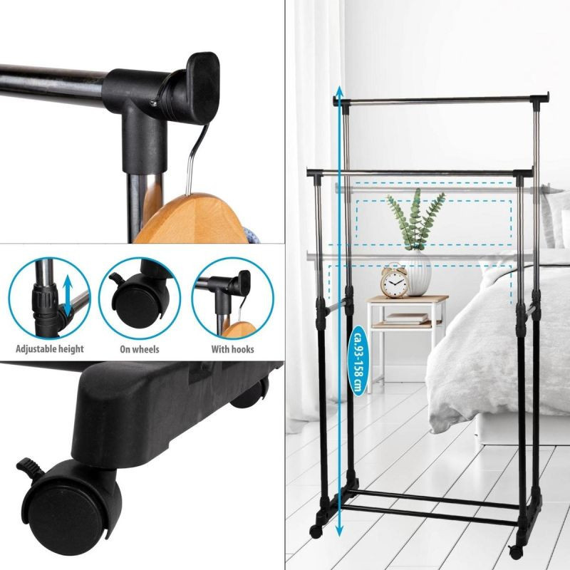 - dvě vodorovné tyče umožňují uložit více oděvů ve stejném prostoru