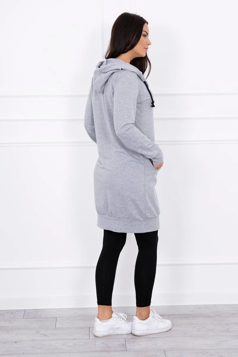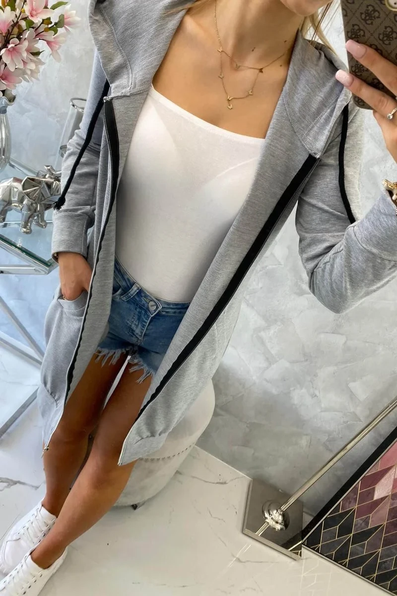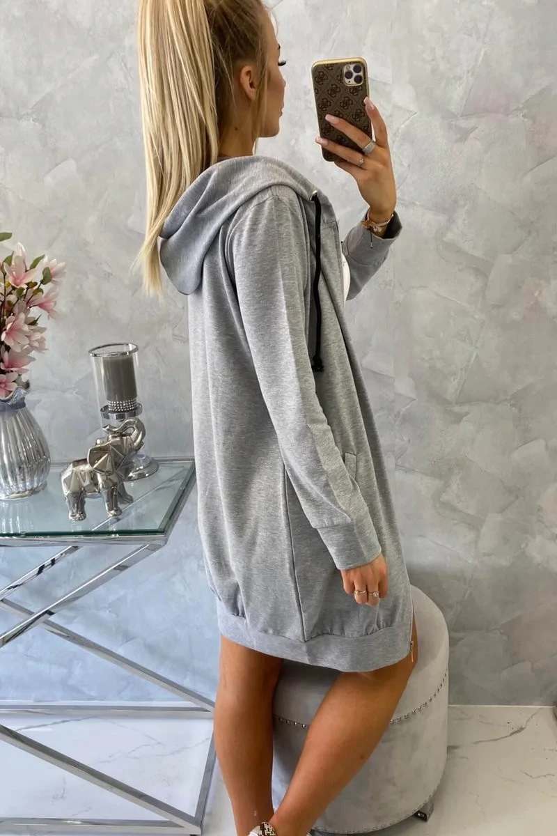 Představujeme vám pohodlnou dlouhou mikinu s kapucí. Mikina má zapínání na zip. Mikina je vyrobena z vysoce kvalitního materiálu. Velikost je univerzální a vyhovuje dámám, které nosí velikost S, M nebo L.