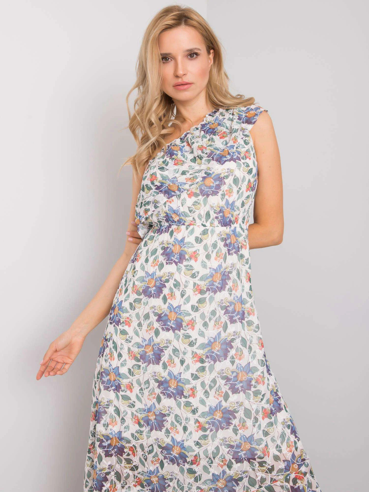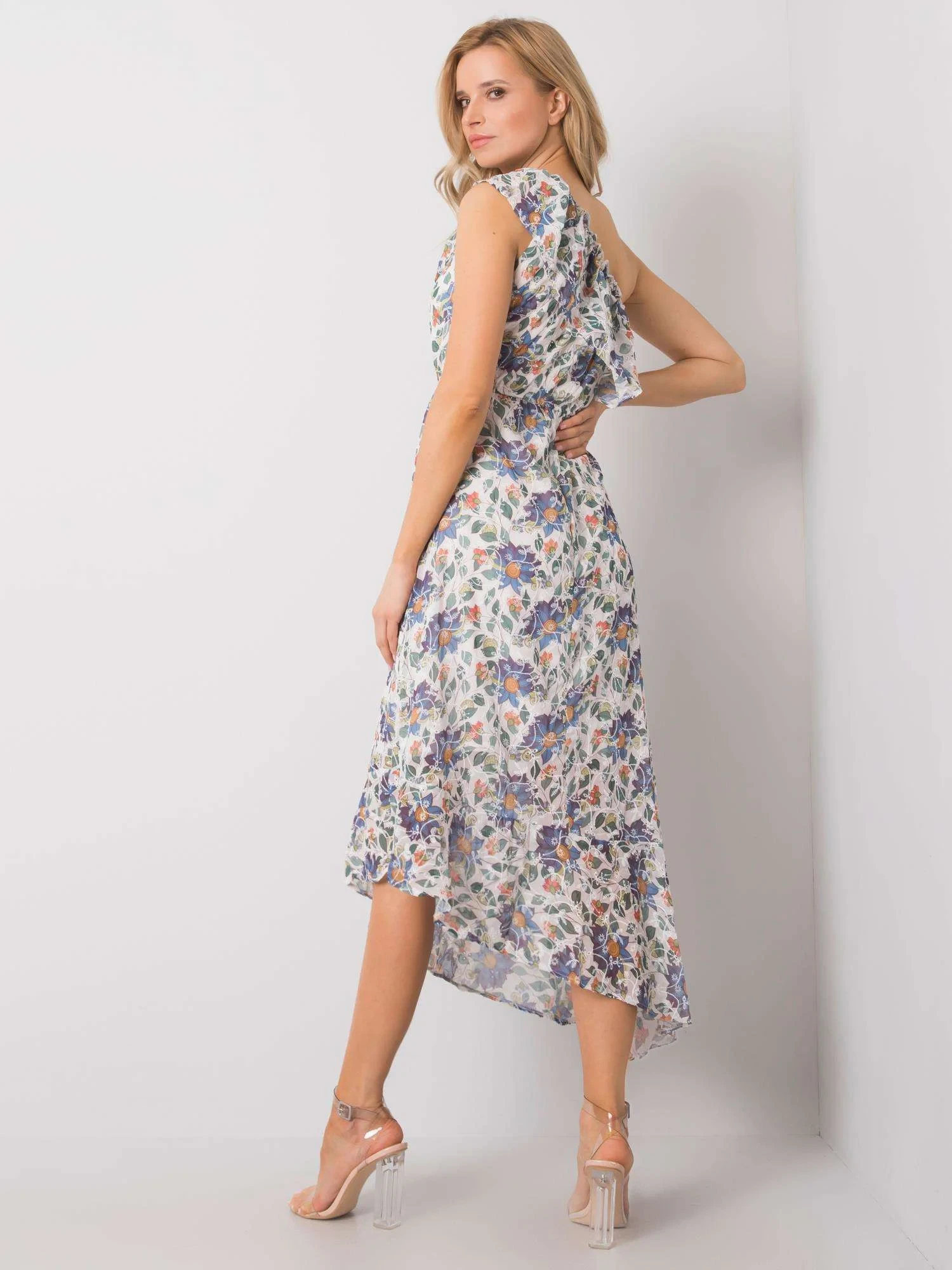 RUE PARIS Vzorované šaty s asymetrickým výstřihem.