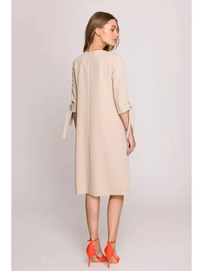 Přidání recenze k Šaty áčkového střihu s rukávy béžové model 20966050 - STYLOVE