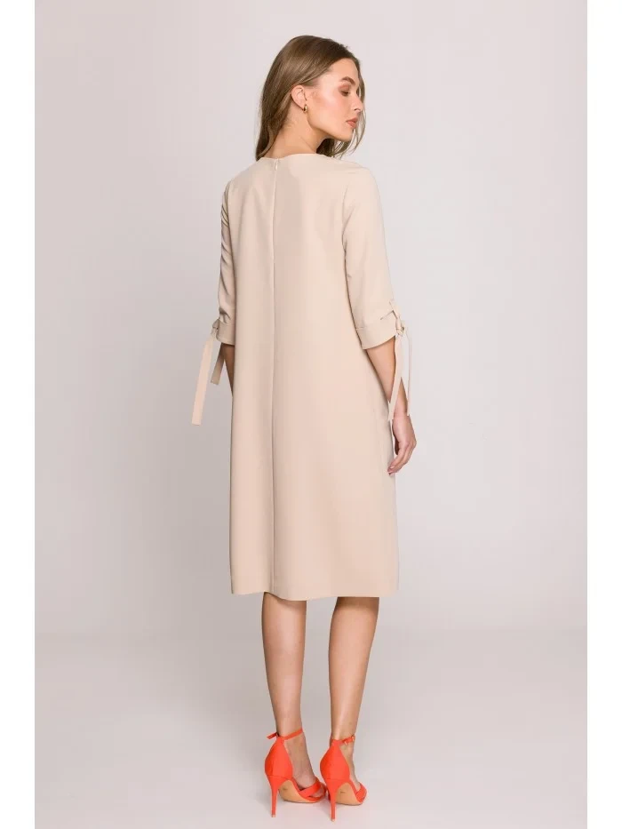 Šaty áčkového střihu s rukávy béžové model 20966050 - STYLOVE