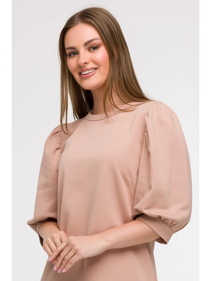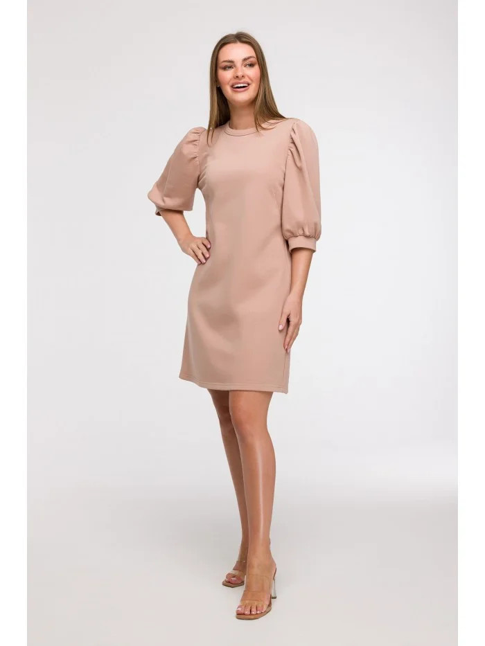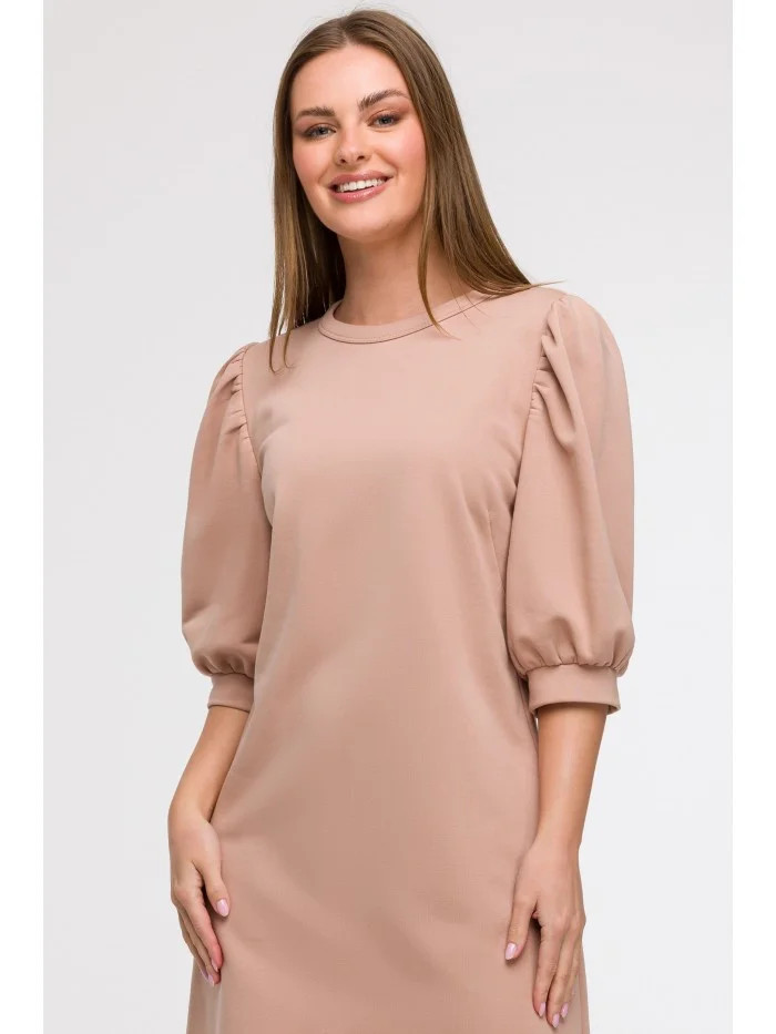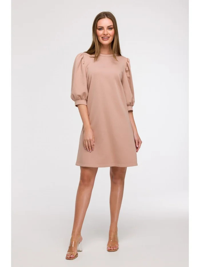Šaty áčkového střihu s rukávy mocca model 21047139 - BeWear