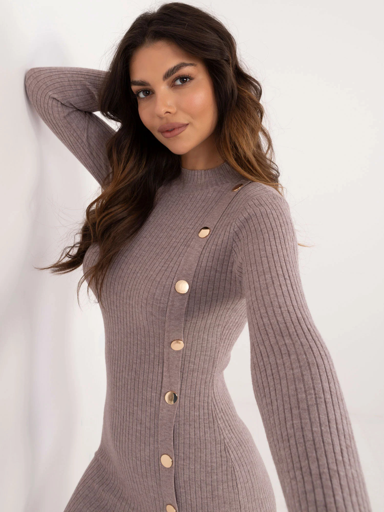 Modelka má na sobě velikost S/M. Rozměry modelky: výška 173 cm, prsa 85 cm, pas 62 cm, boky 95 cm.