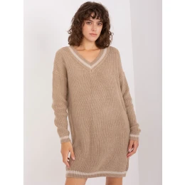 Tmavě béžové pletené šaty s vlnou.