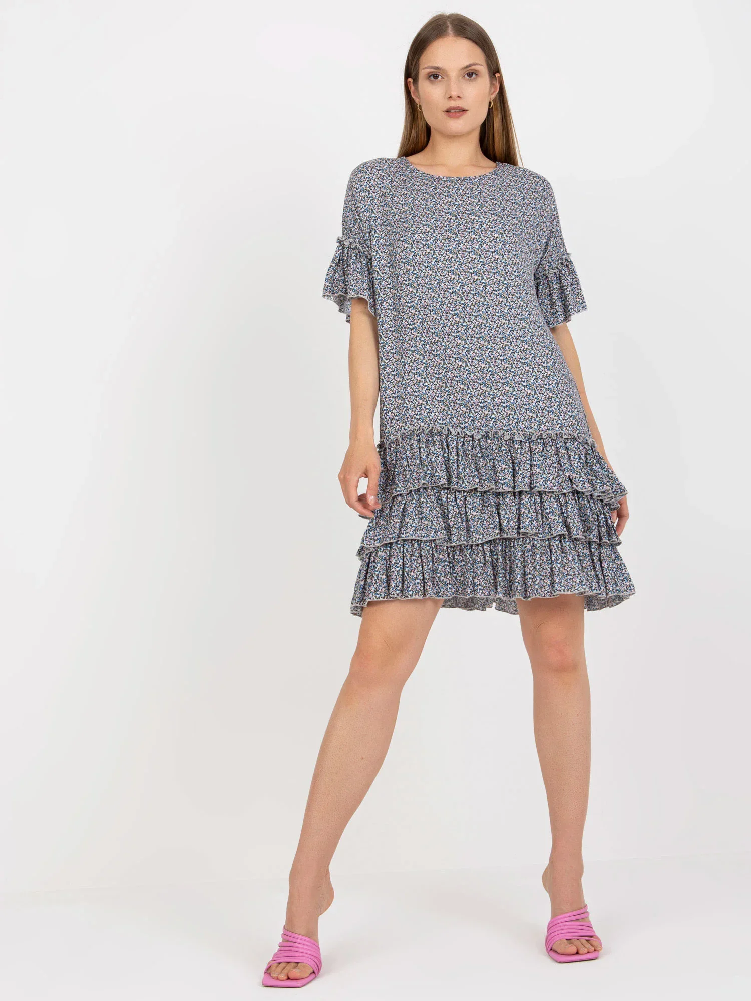 Modelka má na sobě velikost S/M. Rozměry modelky: výška 173 cm, prsa 82 cm, pas 62 cm, boky 91 cm.