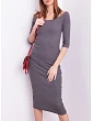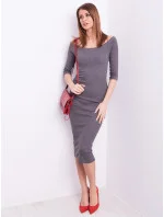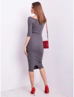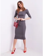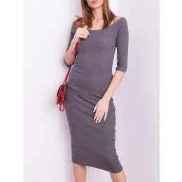 Drobné žebrované šaty s odhalenými rameny v tmavě šedé barvě.