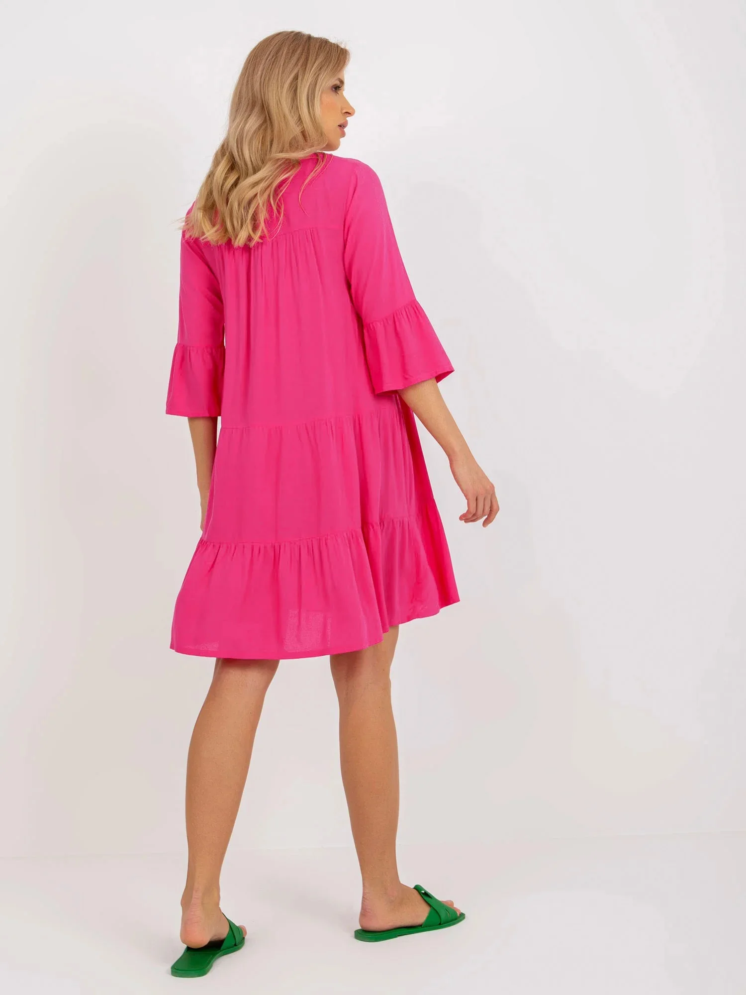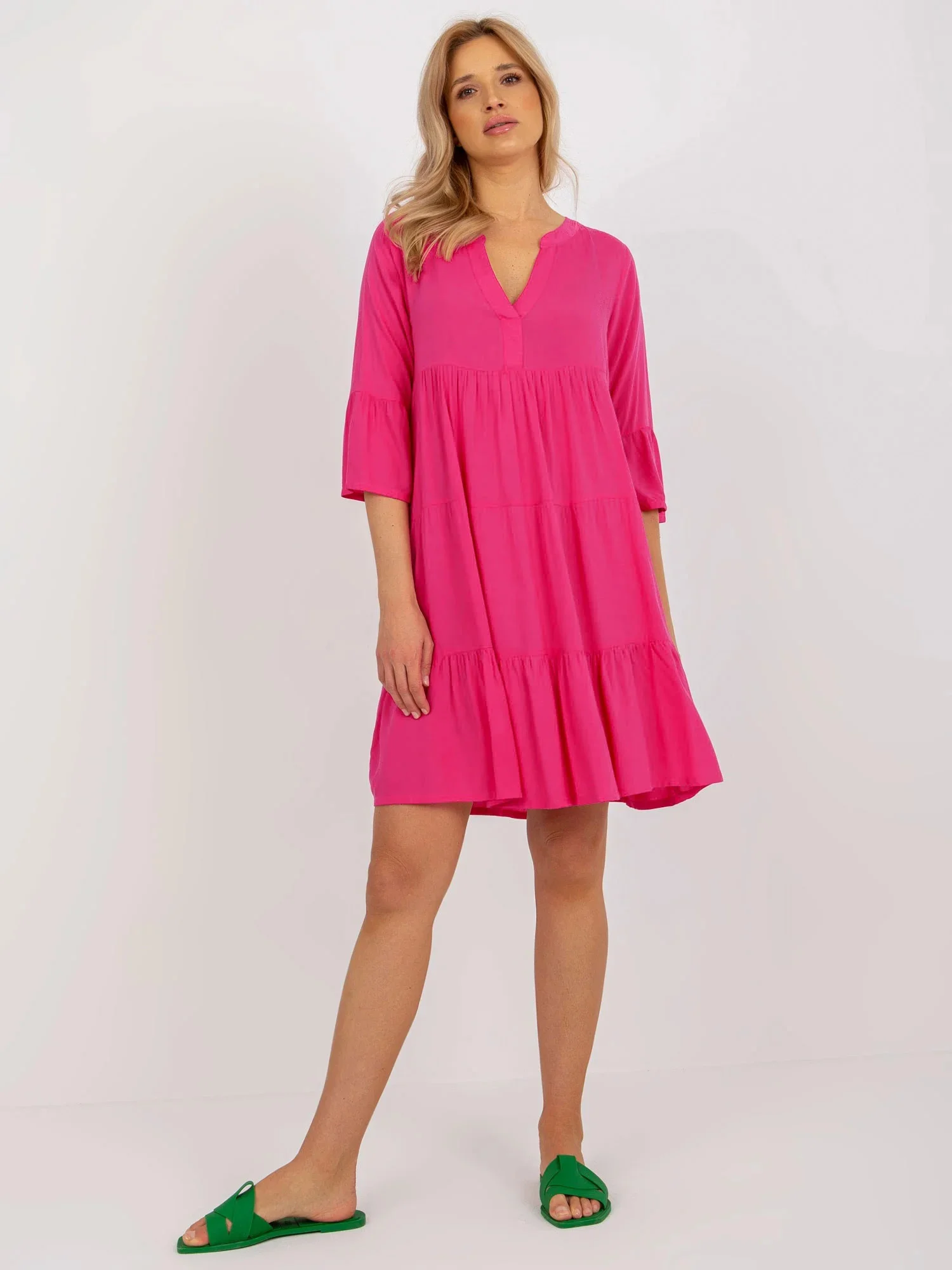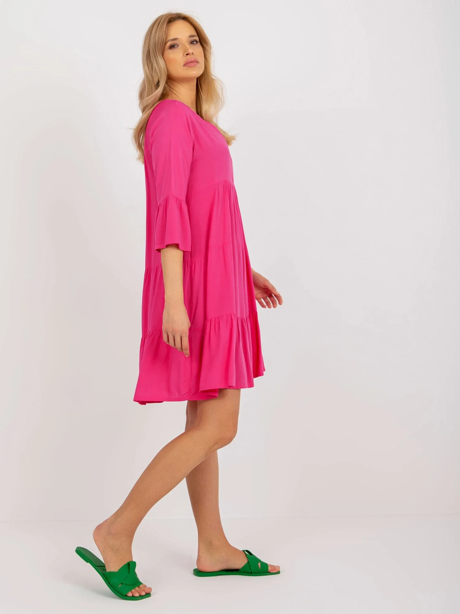 Fuchsiové šaty s volánkem a 3/4 rukávy PODLE .
