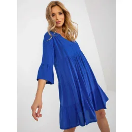 Kobaltové šaty s volánkem a 3/4 rukávy PODLE .