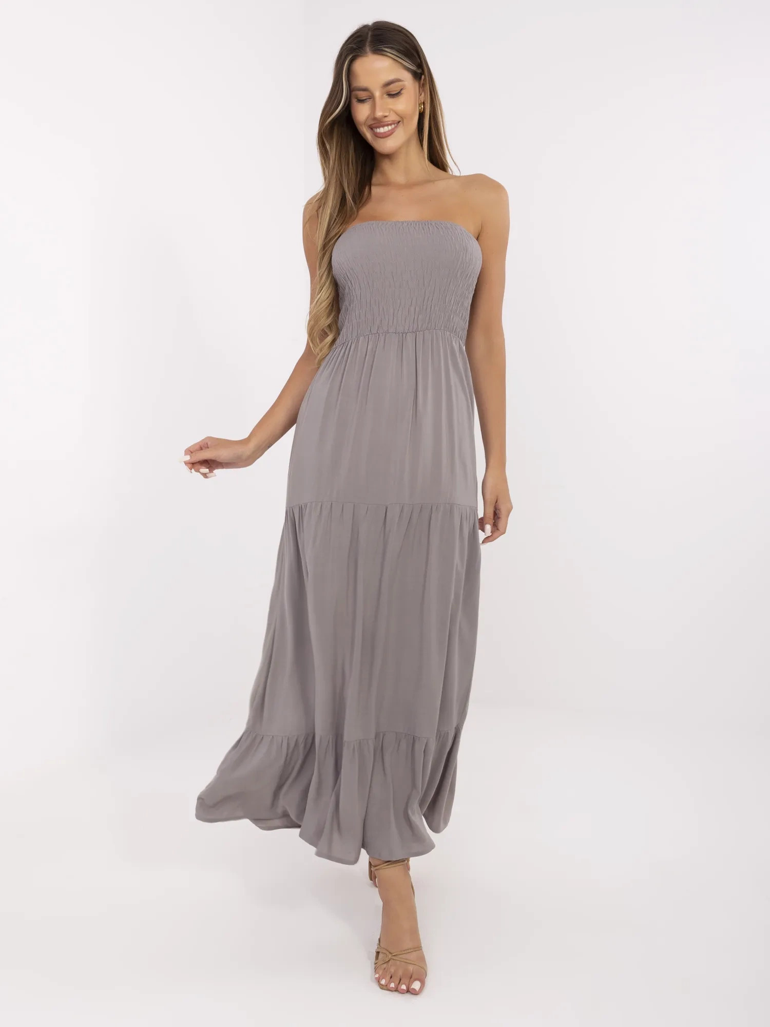 Rozměry šatů ve velikosti S/M měřené na plocho: šířka v podpaží - 31 cm (na plocho), šířka v podpaží - 32 cm ( při natažení), šířka v pase - 37 cm (na plocho), šířka v pase - 52 cm ( při natažení), šířka v bocích - 53 cm, celková délka - 123 cm.