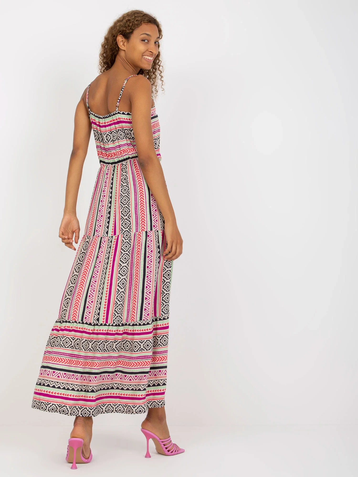 Barevné maxi šaty s volánkem PODLE ÚROVNĚ .