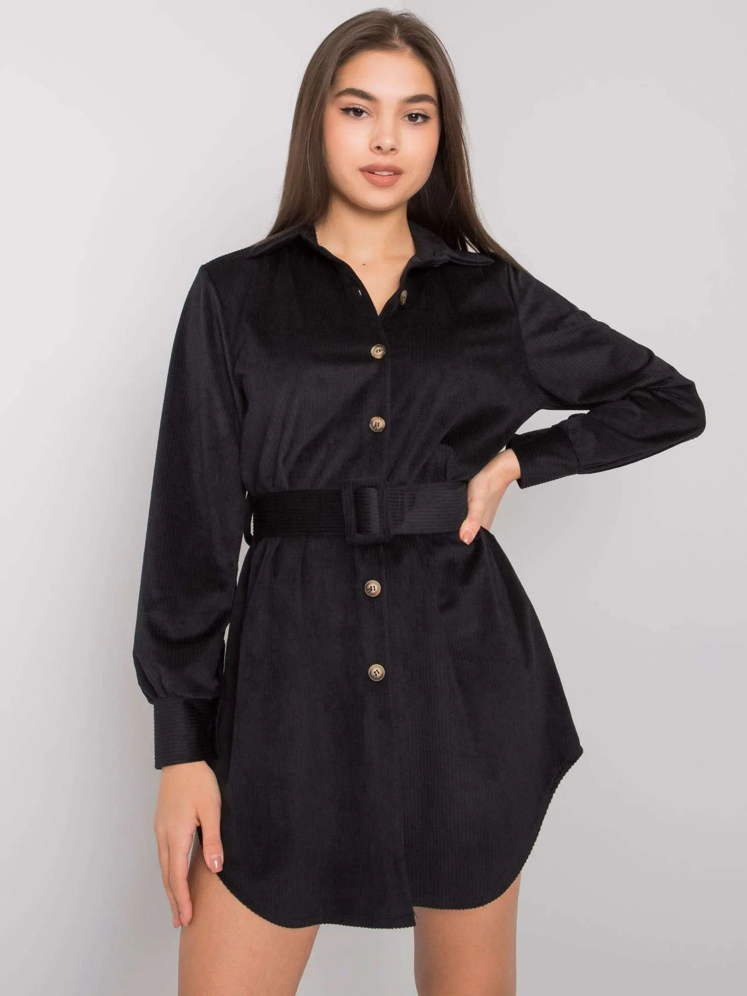Černé šaty na knoflíky.