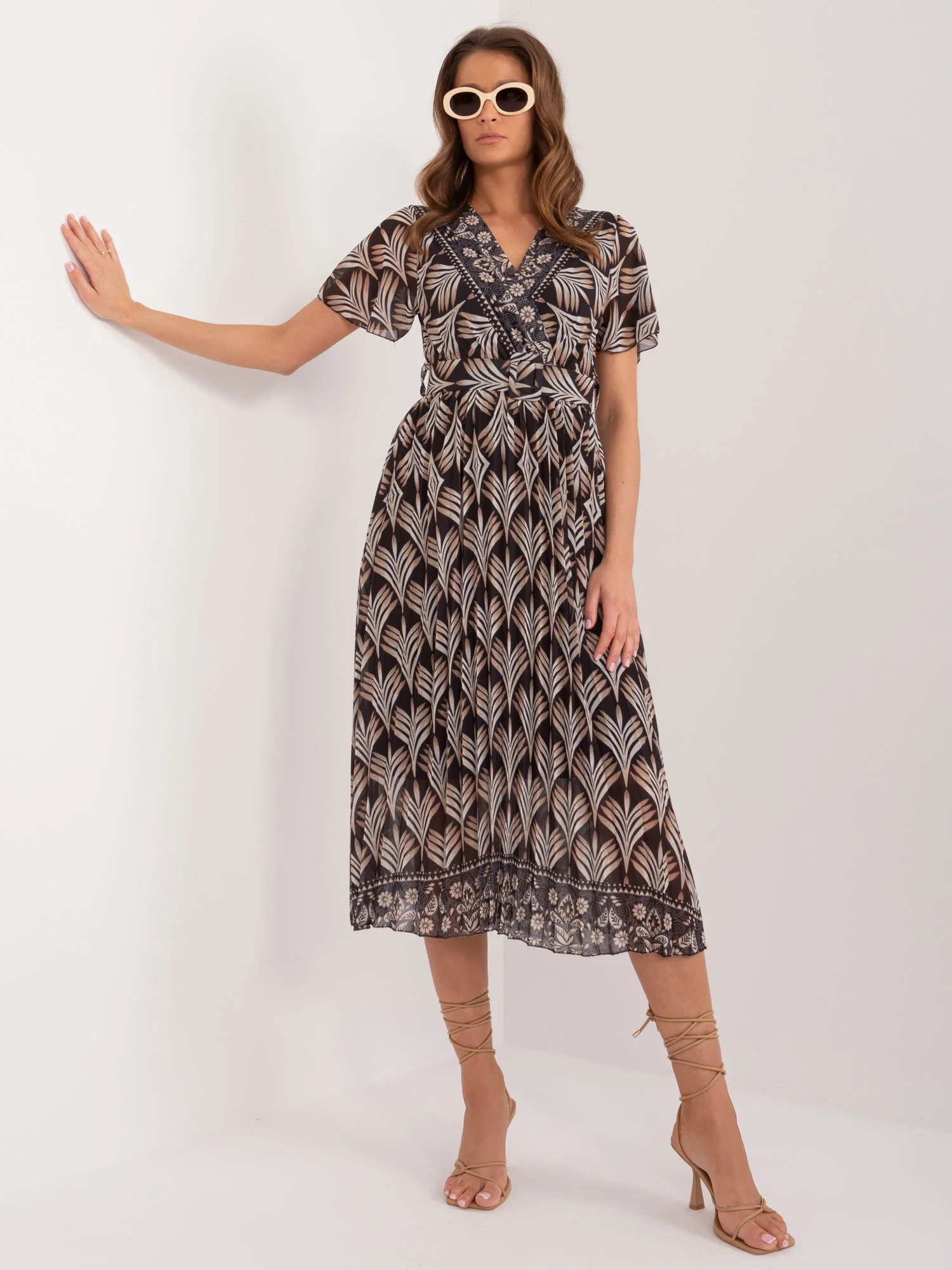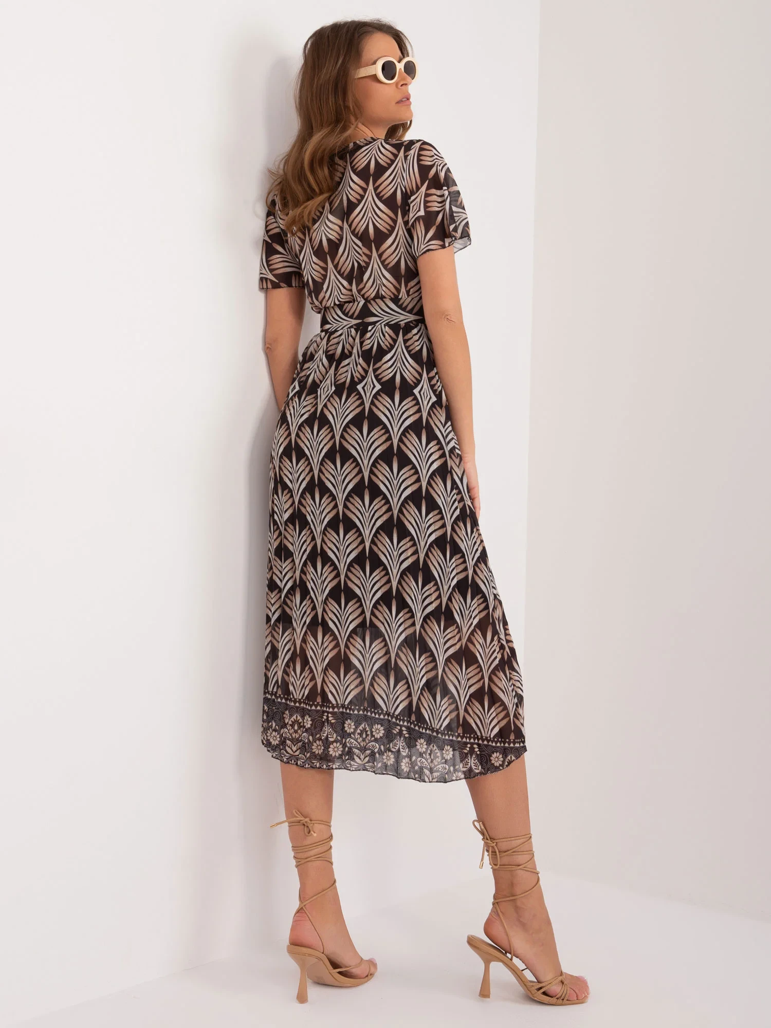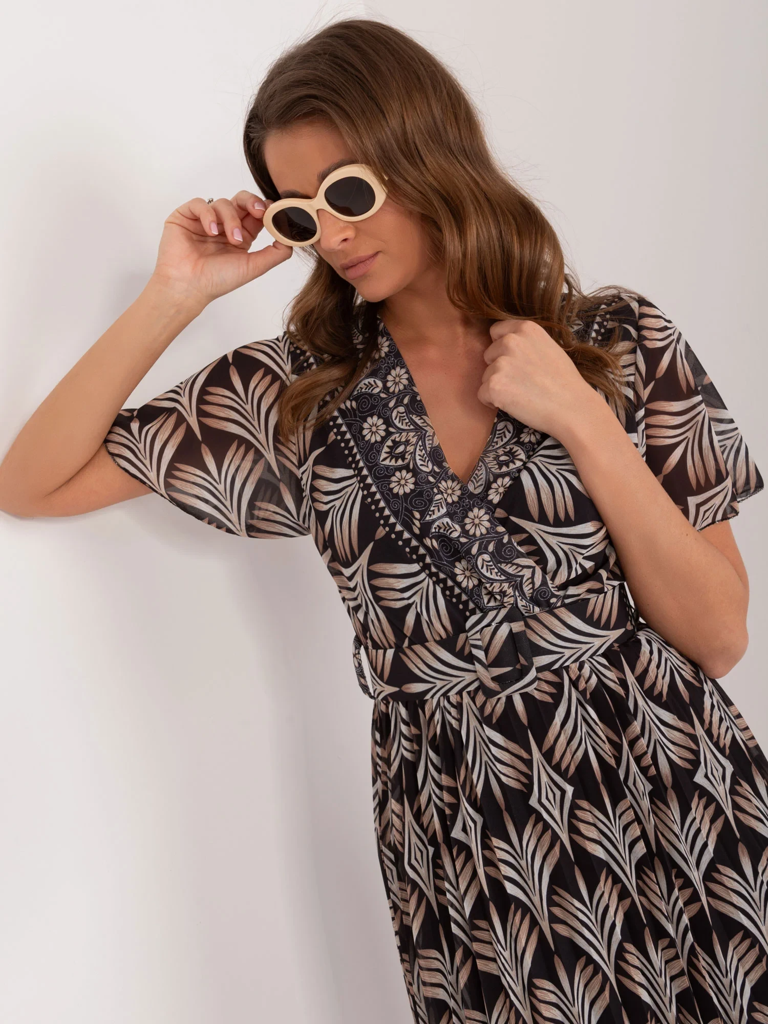 Modelka má na sobě jednu velikost. Rozměry modelky: výška 176 cm, prsa 85 cm, pas 64 cm, boky 92 cm.