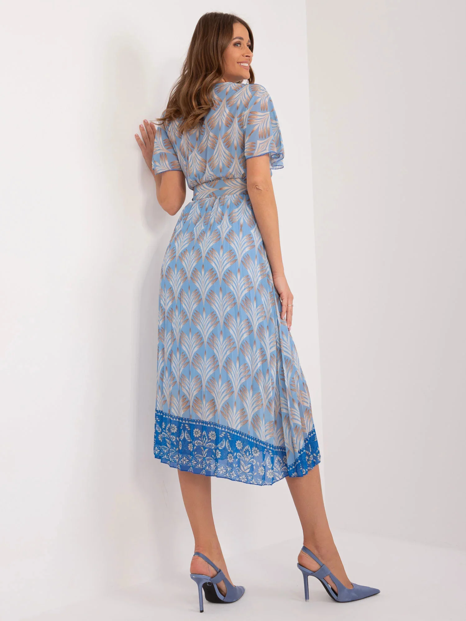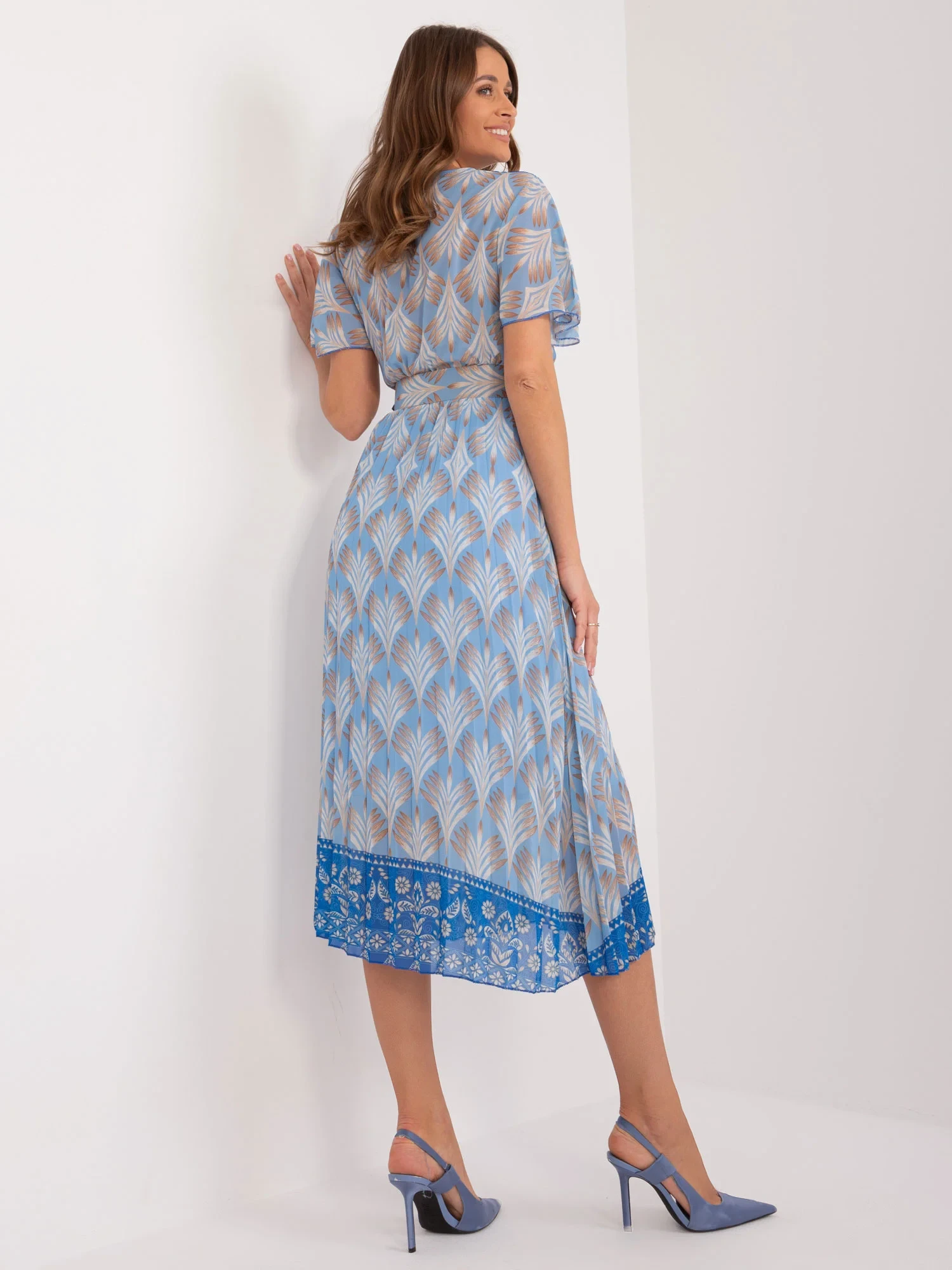 Modelka má na sobě jednu velikost. Rozměry modelky: výška 176 cm, prsa 85 cm, pas 64 cm, boky 92 cm.