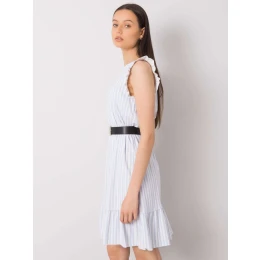 Světle modré pruhované dámské šaty.