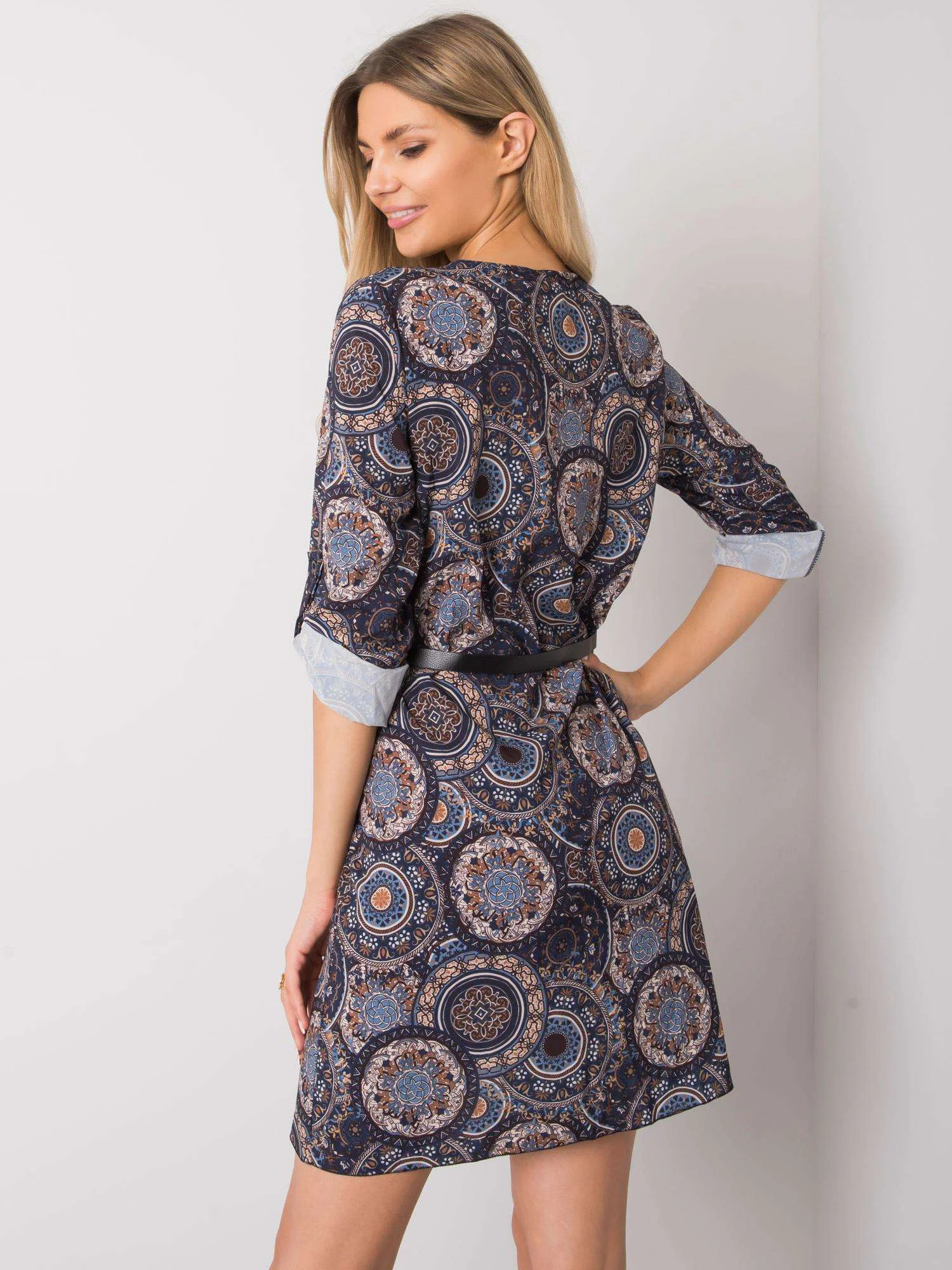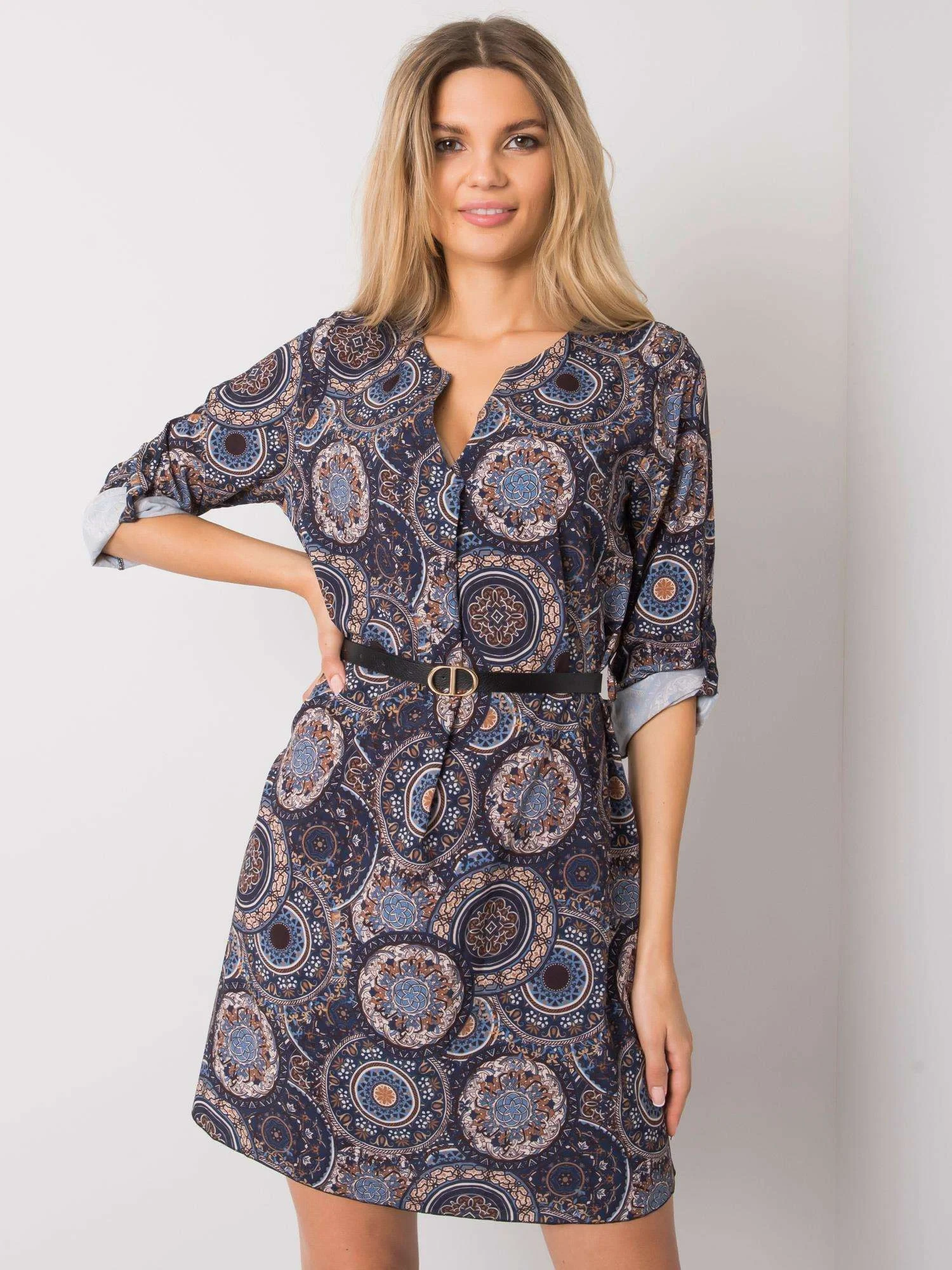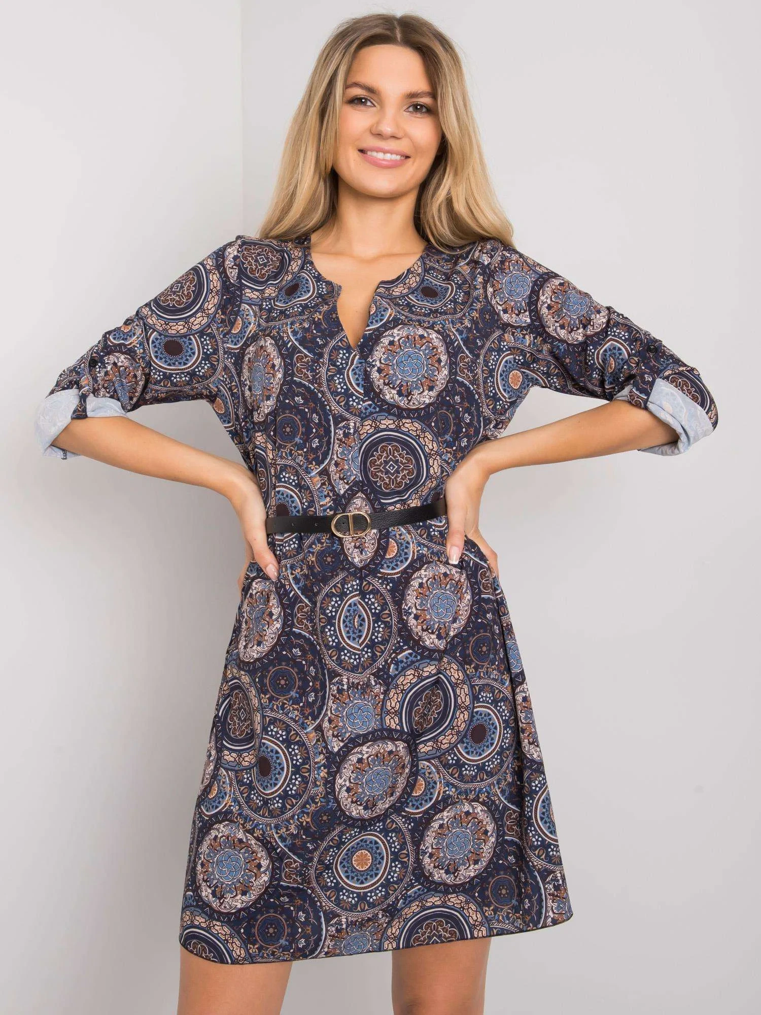 doplňky: pásek, ohrnuté rukávy se zapínáním na knoflíky