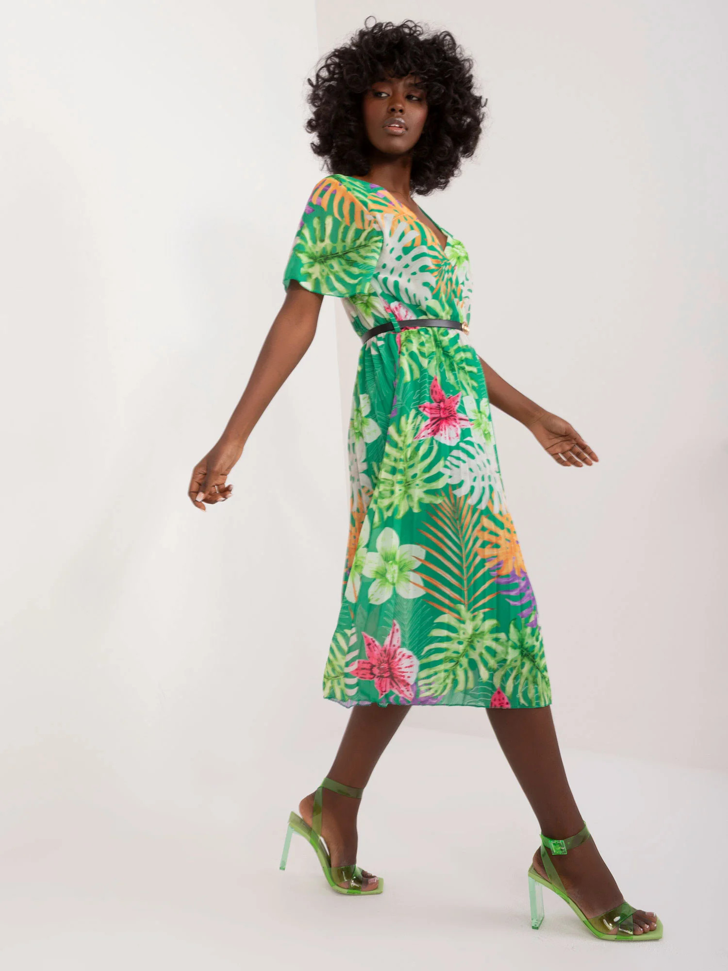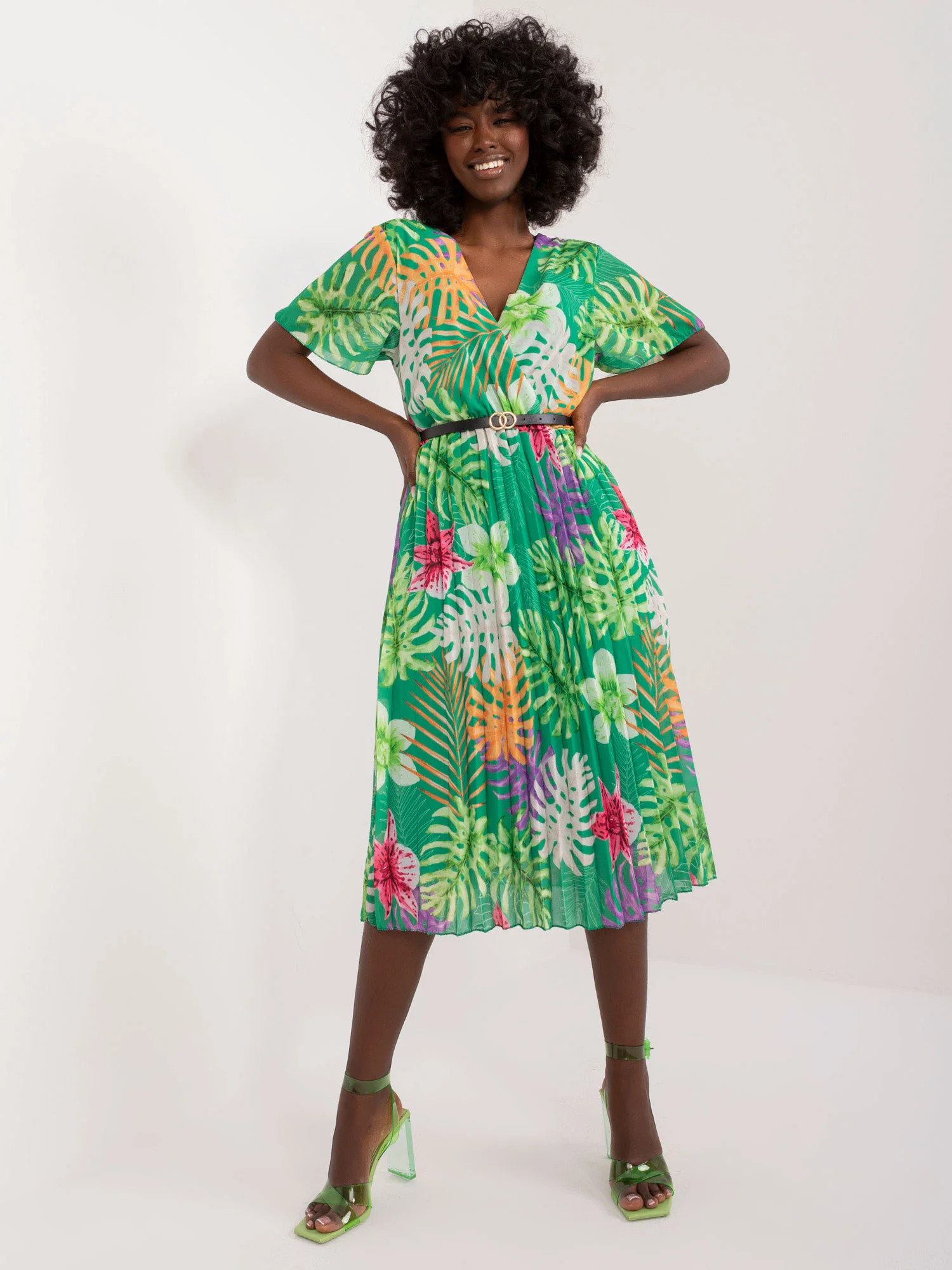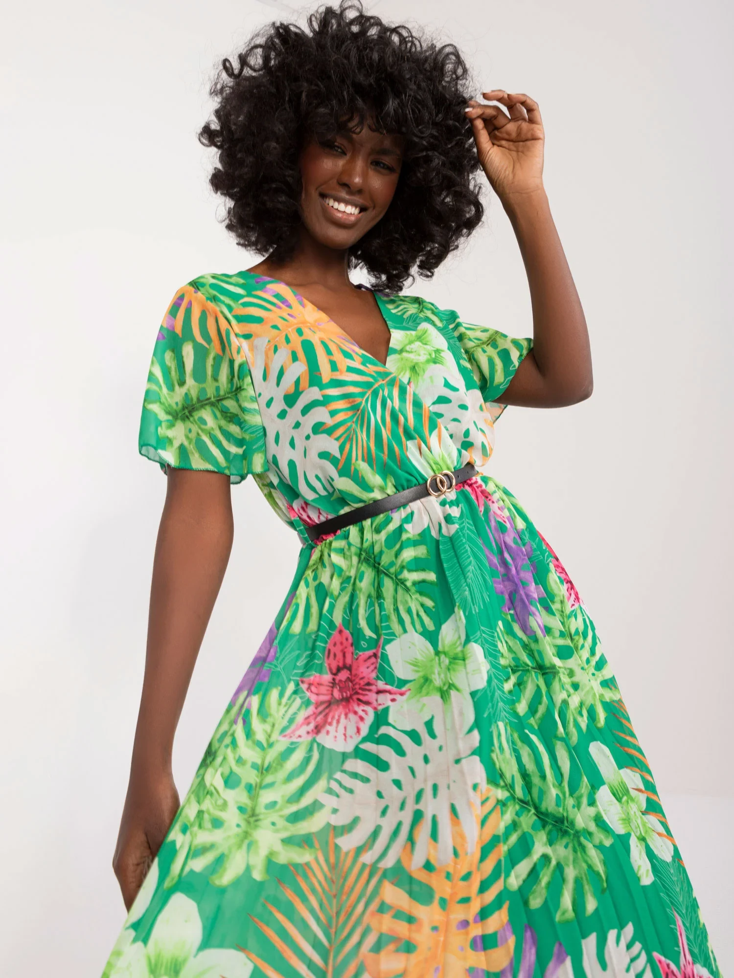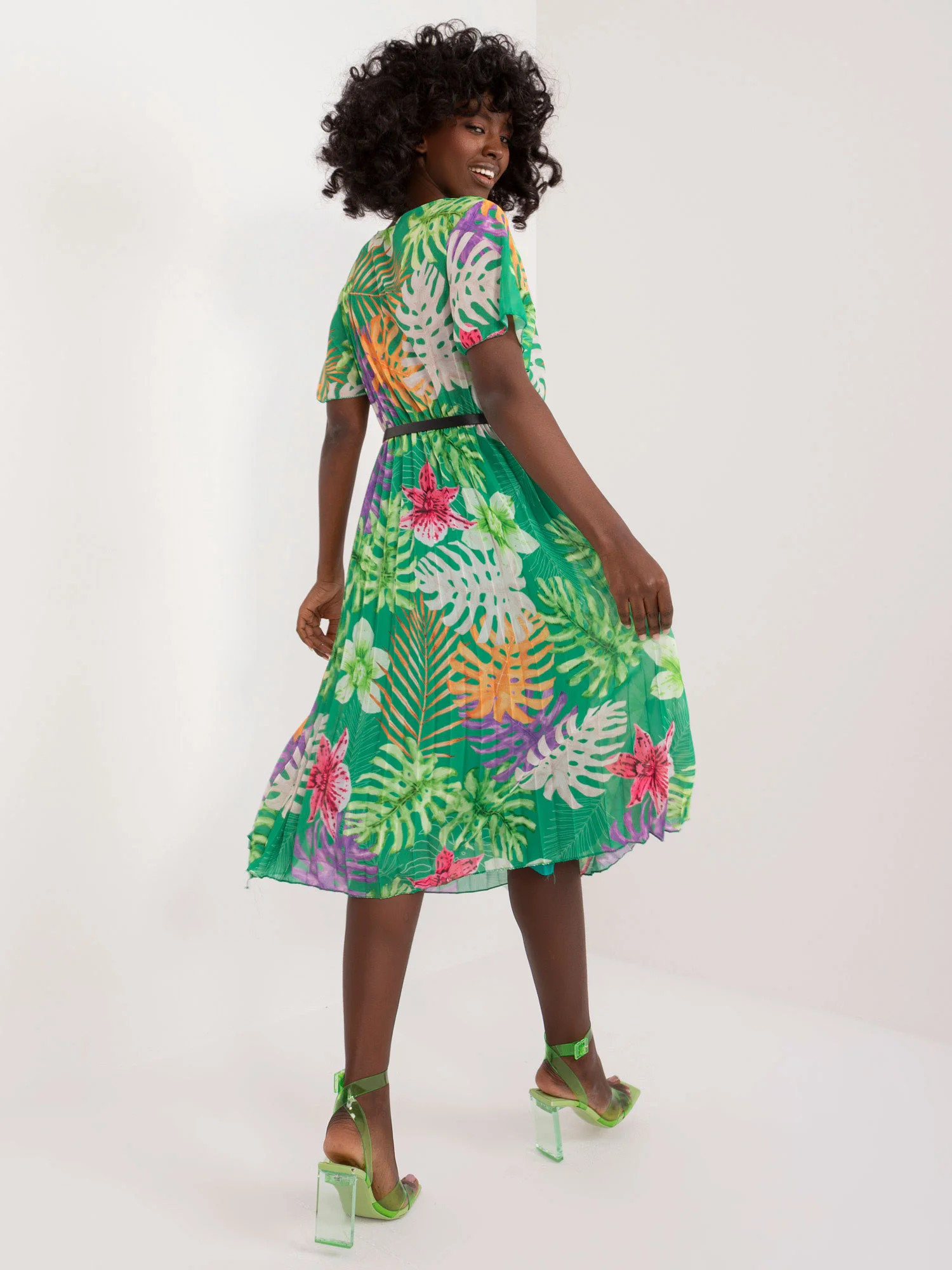 Modelka má na sobě jednu velikost. Rozměry modelky: výška 168 cm, poprsí 82 cm, pas 62 cm, boky 93 cm