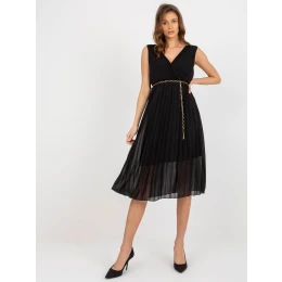 Černé plisované midi šaty bez rukávů .