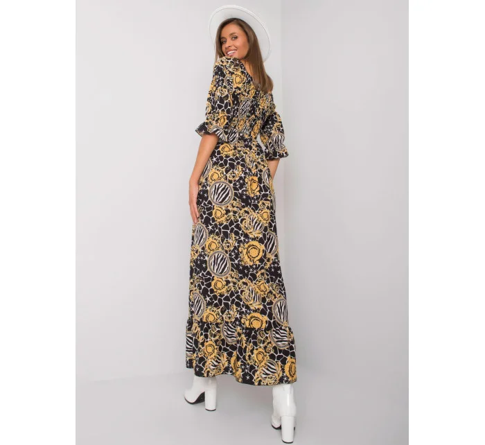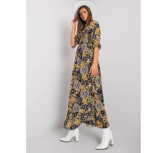 Černo-žluté volánové maxi šaty.