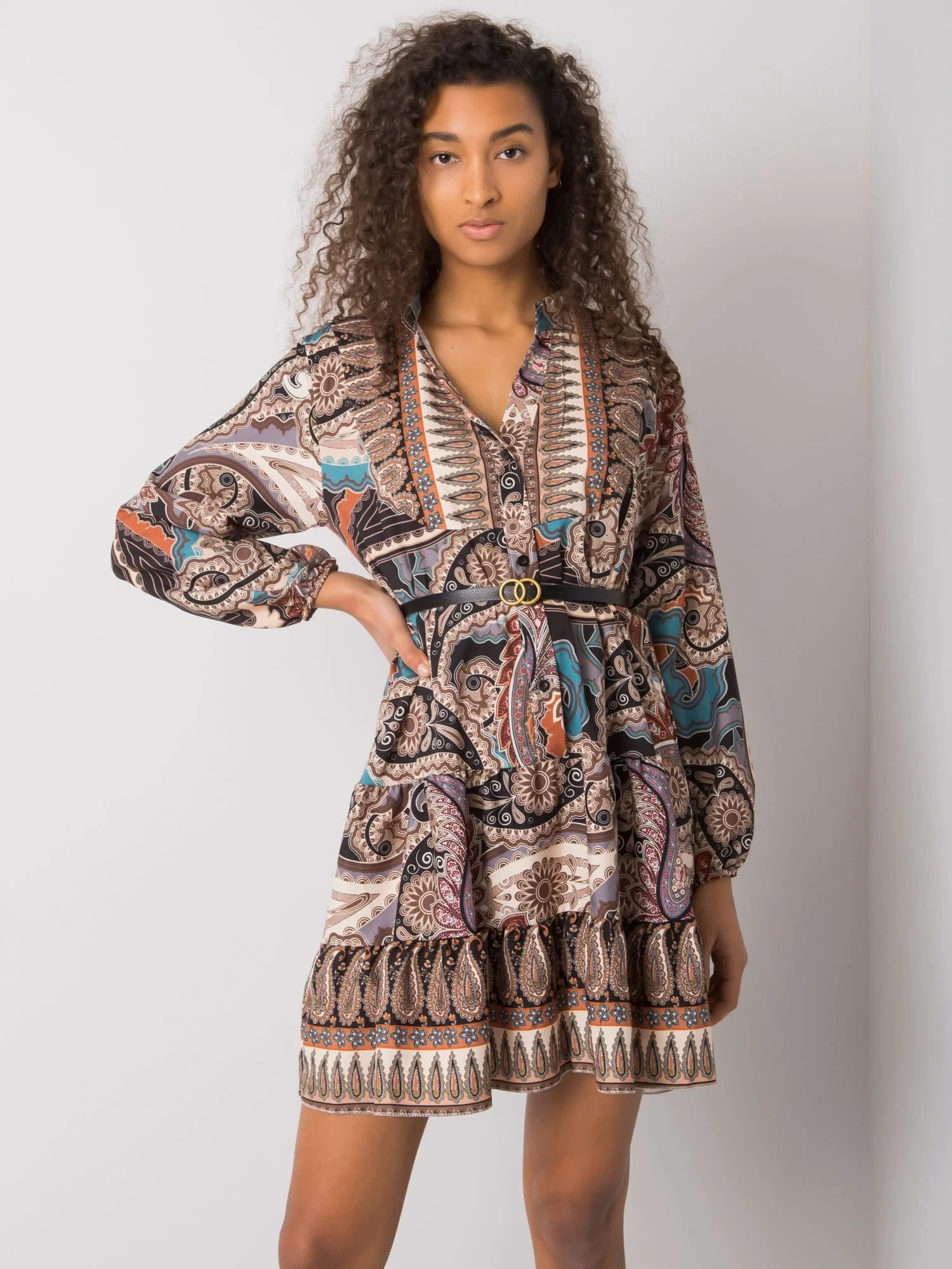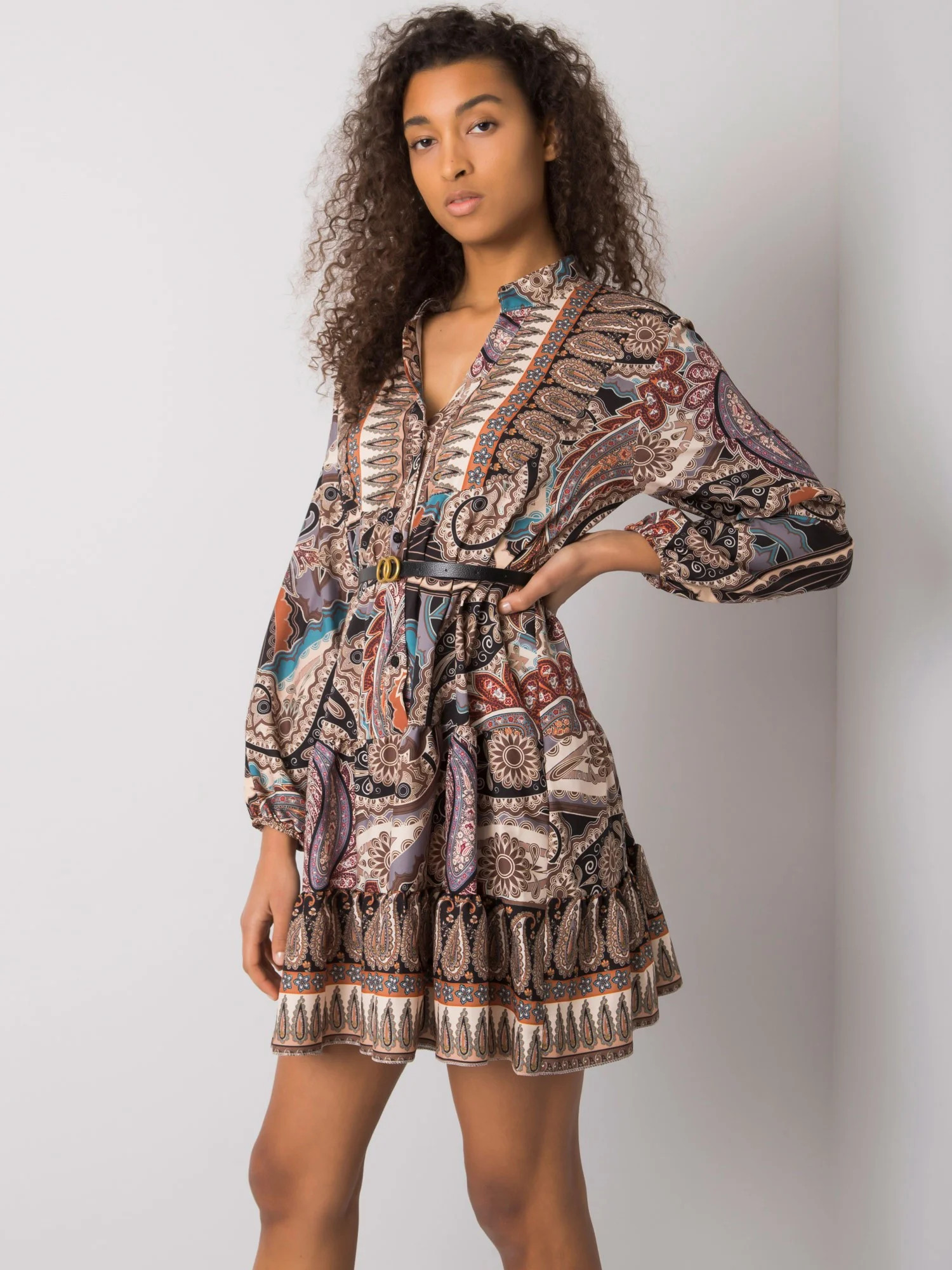 Modelka má na sobě jednu velikost. Rozměry modelky: výška 178 cm, prsa 82 cm, pas 61 cm, boky 88 cm.