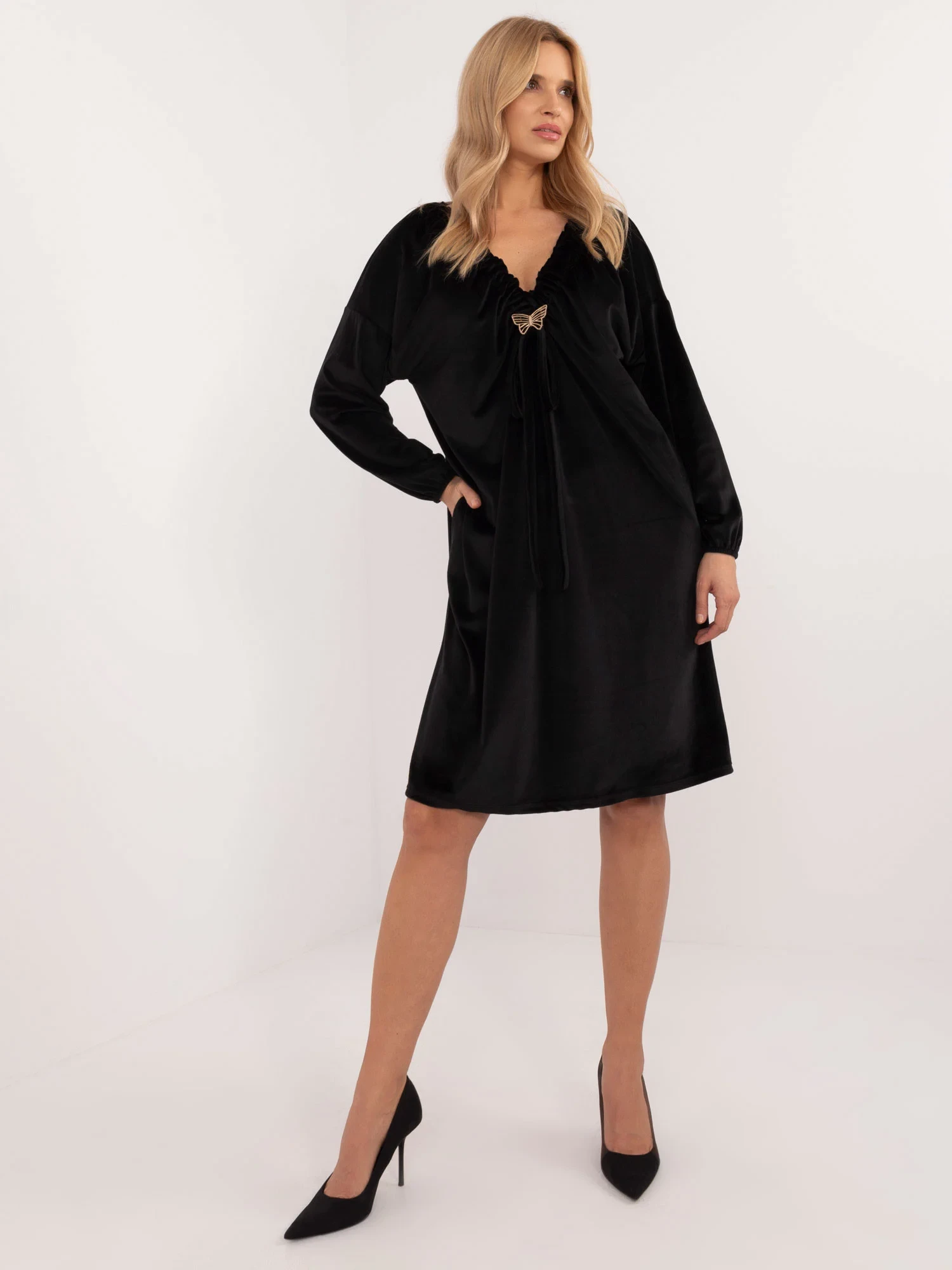 Modelka má na sobě jednu velikost. míry modelky: výška 175 cm, prsa 90 cm, pas 66 cm, boky 94 cm.