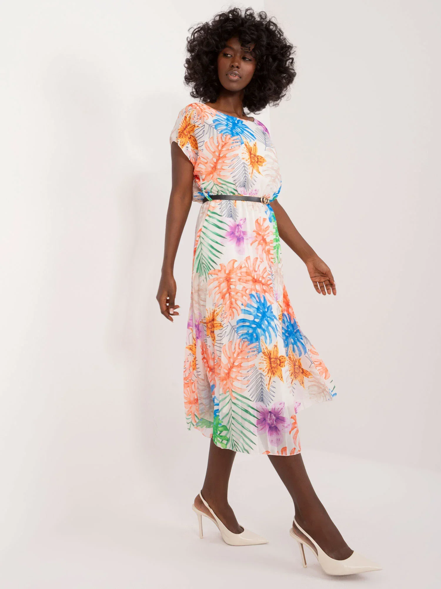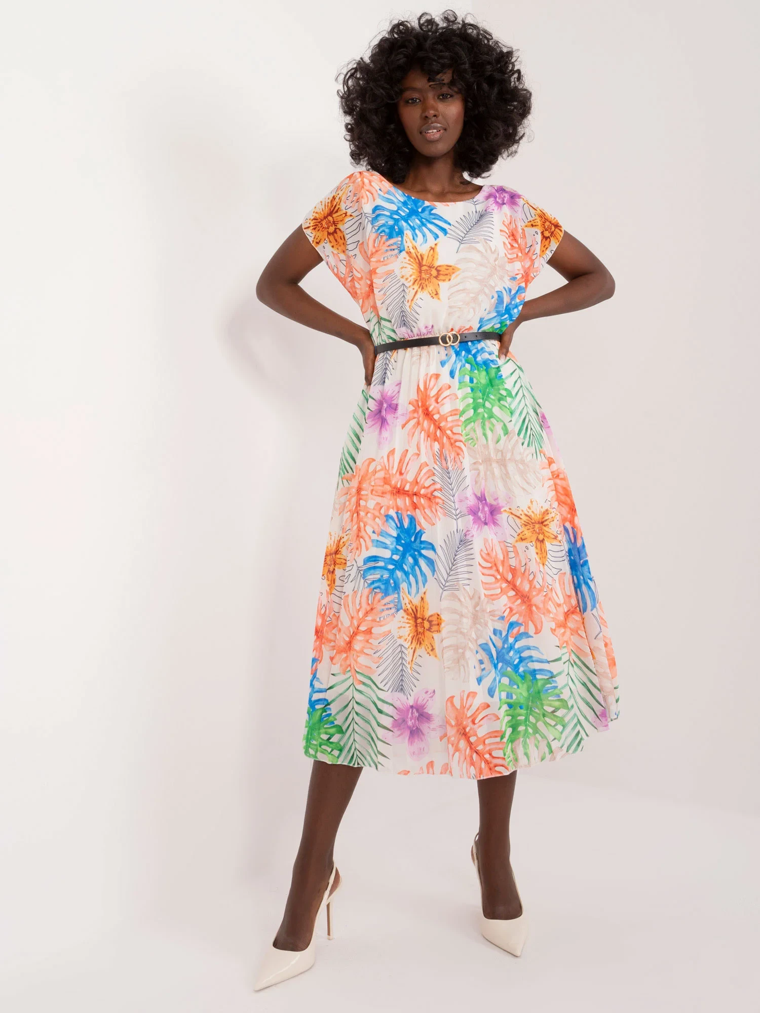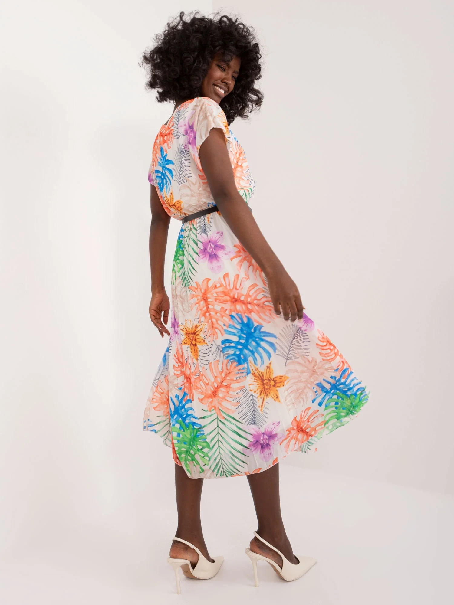 Modelka má na sobě jednu velikost. Rozměry modelky: výška 168 cm, poprsí 82 cm, pas 62 cm, boky 93 cm