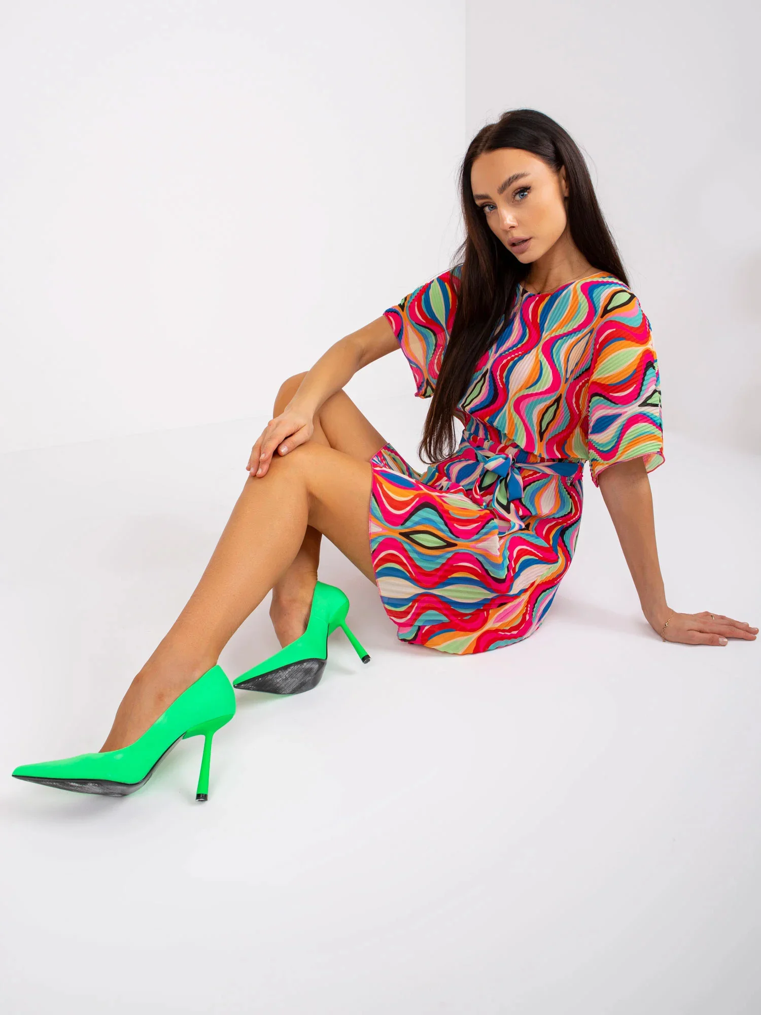 Modelka má na sobě jednu velikost. Rozměry modelky: výška 171 cm, poprsí 84 cm, pas 60 cm, boky 88 cm.